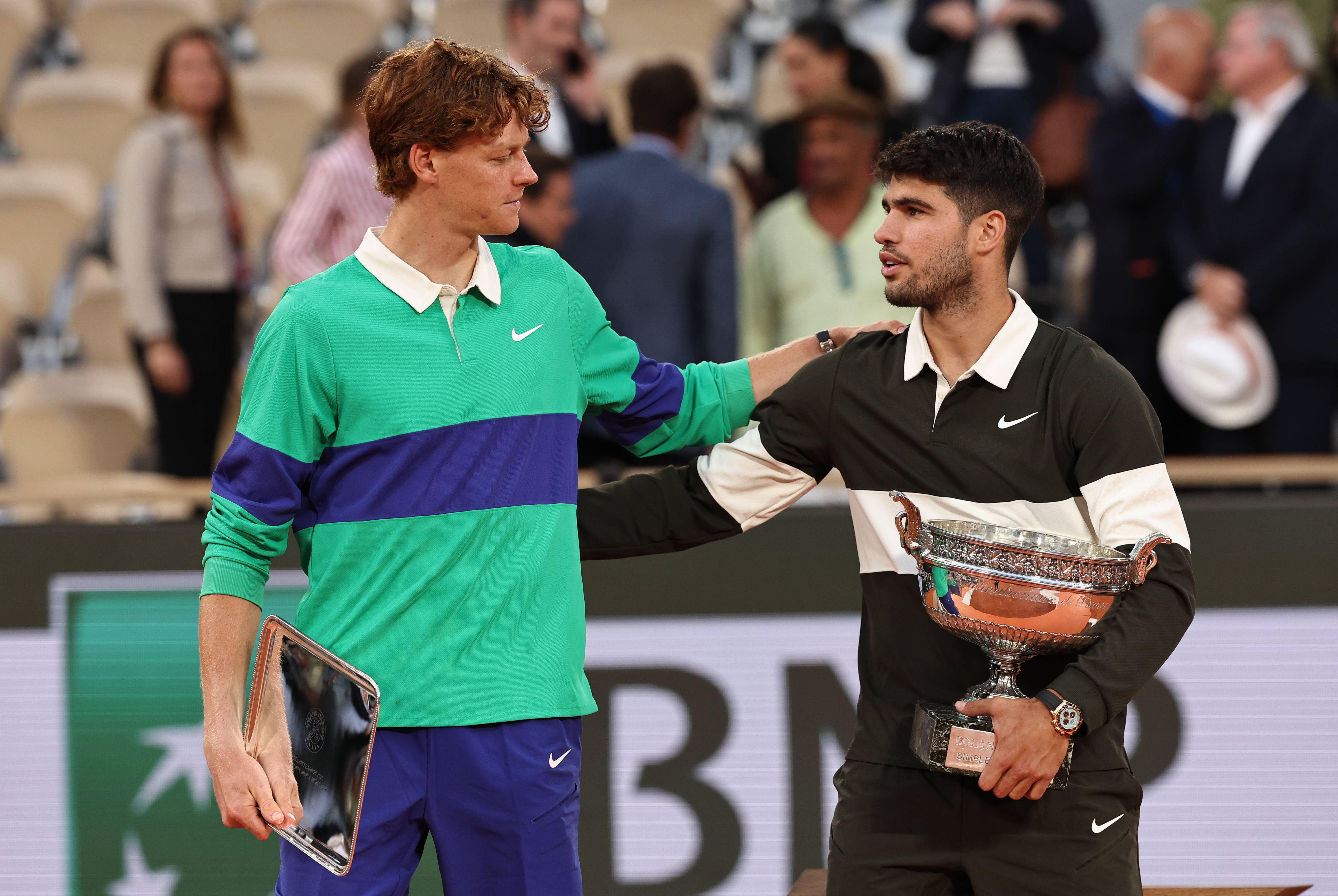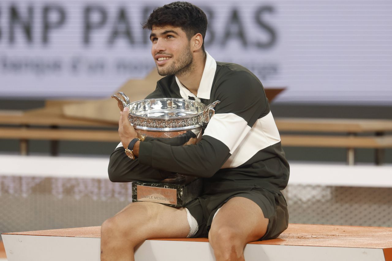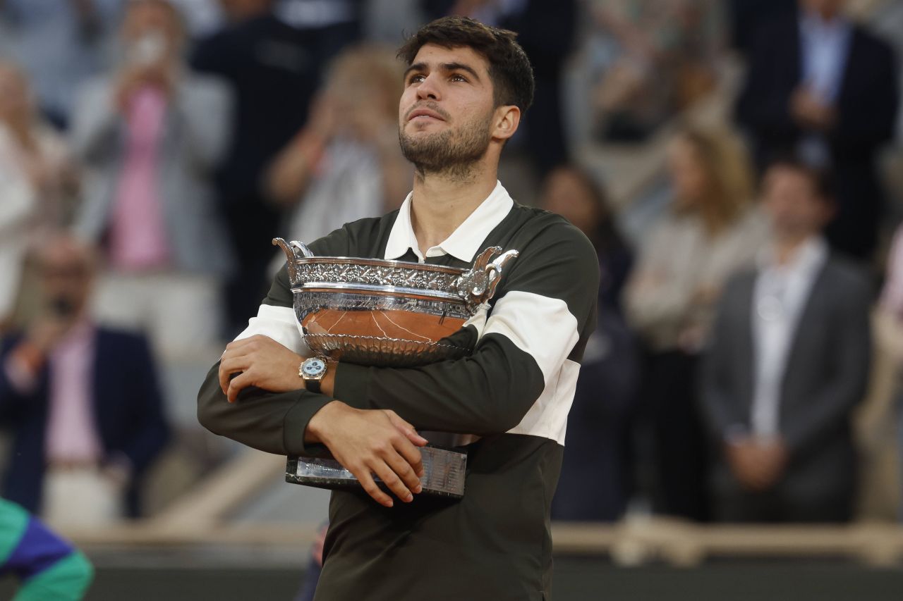 Tenismanul spaniol Carlos Alcaraz, numărul 2 mondial, a câştigat turneul de Mare Şlem de la Roland Garros pentru al doilea an consecutiv, după ce l-a învins în cinci seturi, 4-6, 6-7 (4/7), 6-4, 7-6 (7/3), 7-6 (10/2), pe italianul Jannik Sinner.