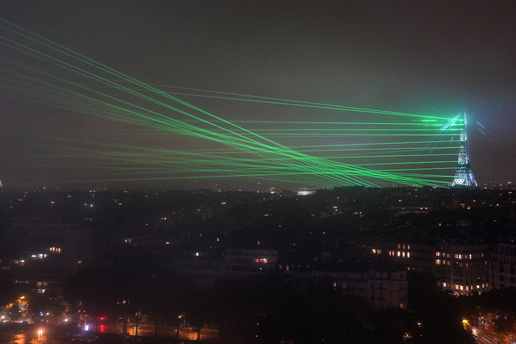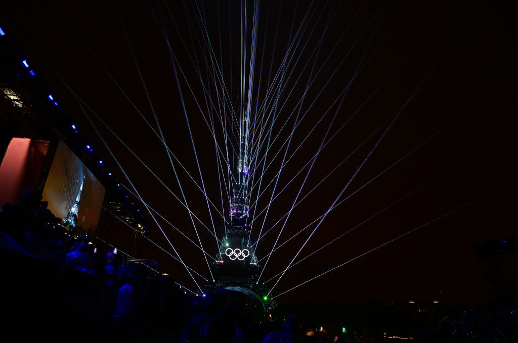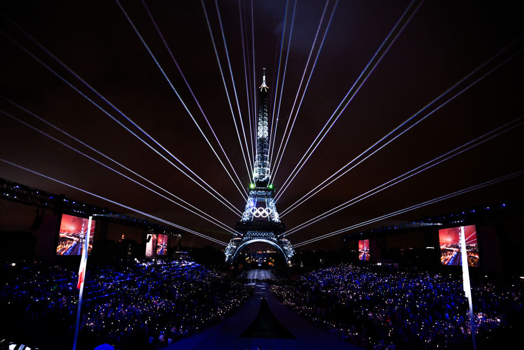 Într-un final epic, marele judoka francez Teddy Riner și sprintera Marie-Jose Perec au folosit torța olimpică pentru a aprinde un cazan care alimenta un balon cu aer cald uriaș.