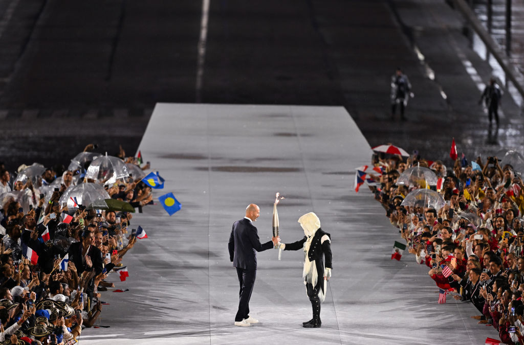 După o călătorie de trei luni din Grecia la Paris, torța olimpică a fost înmânată fostului fotbalist francez Zinedine Zidane, înainte de a fi transmisă vedetelor tenisului Rafael Nadal și Serena Williams.
