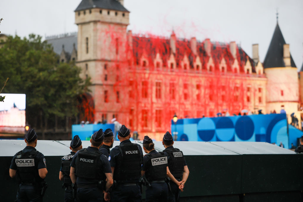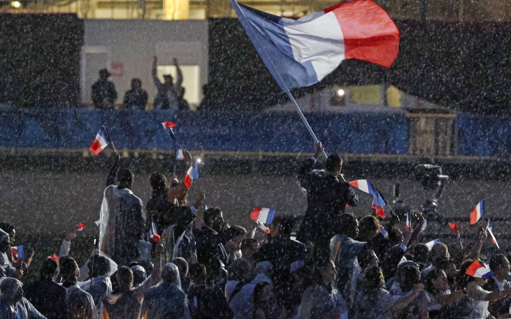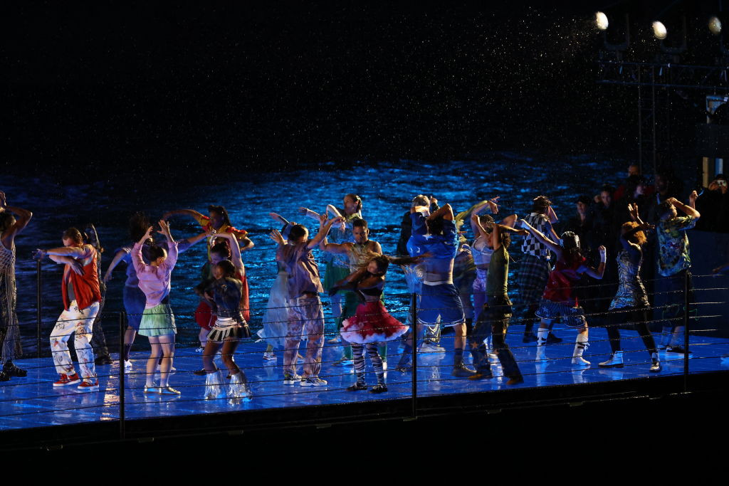 Mii de sportivi și artiști au defilat de-a lungul Senei seara, pe ploaie, momentul fiind unic în felul său.
