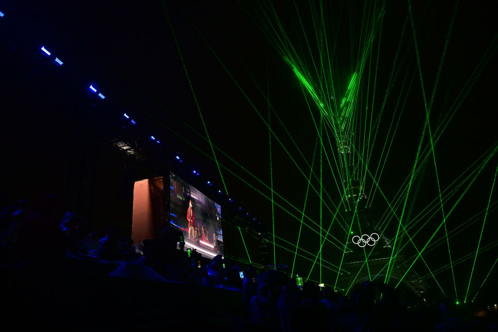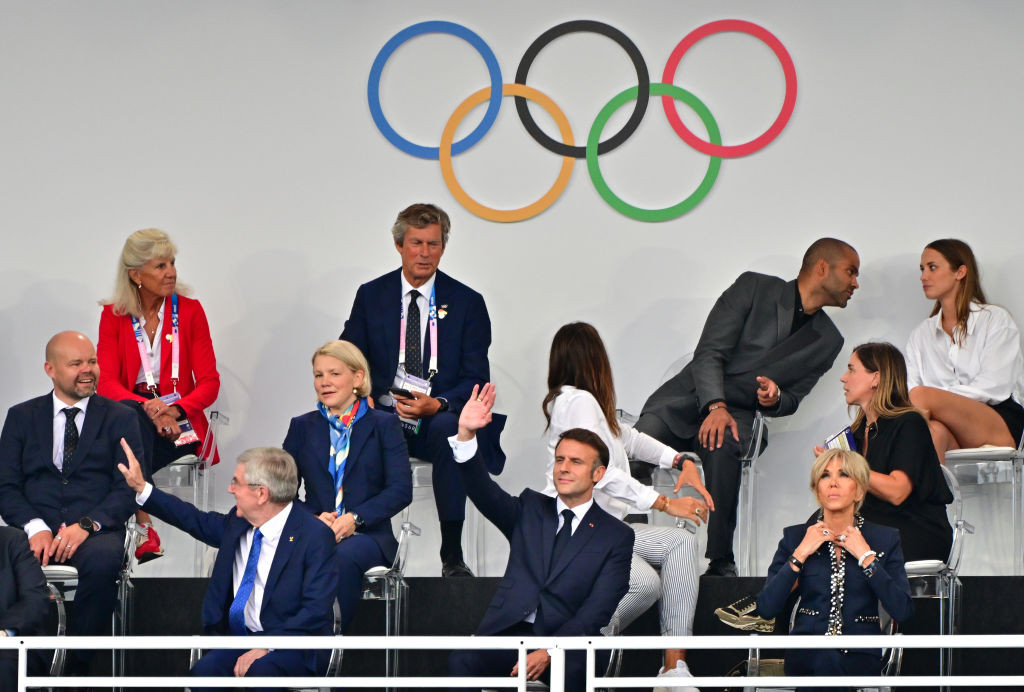 Președintele francez Emmanuel Macron a asistat la spectacol alături de președintele Comitetului Internațional Olimpic, Thomas Bach.