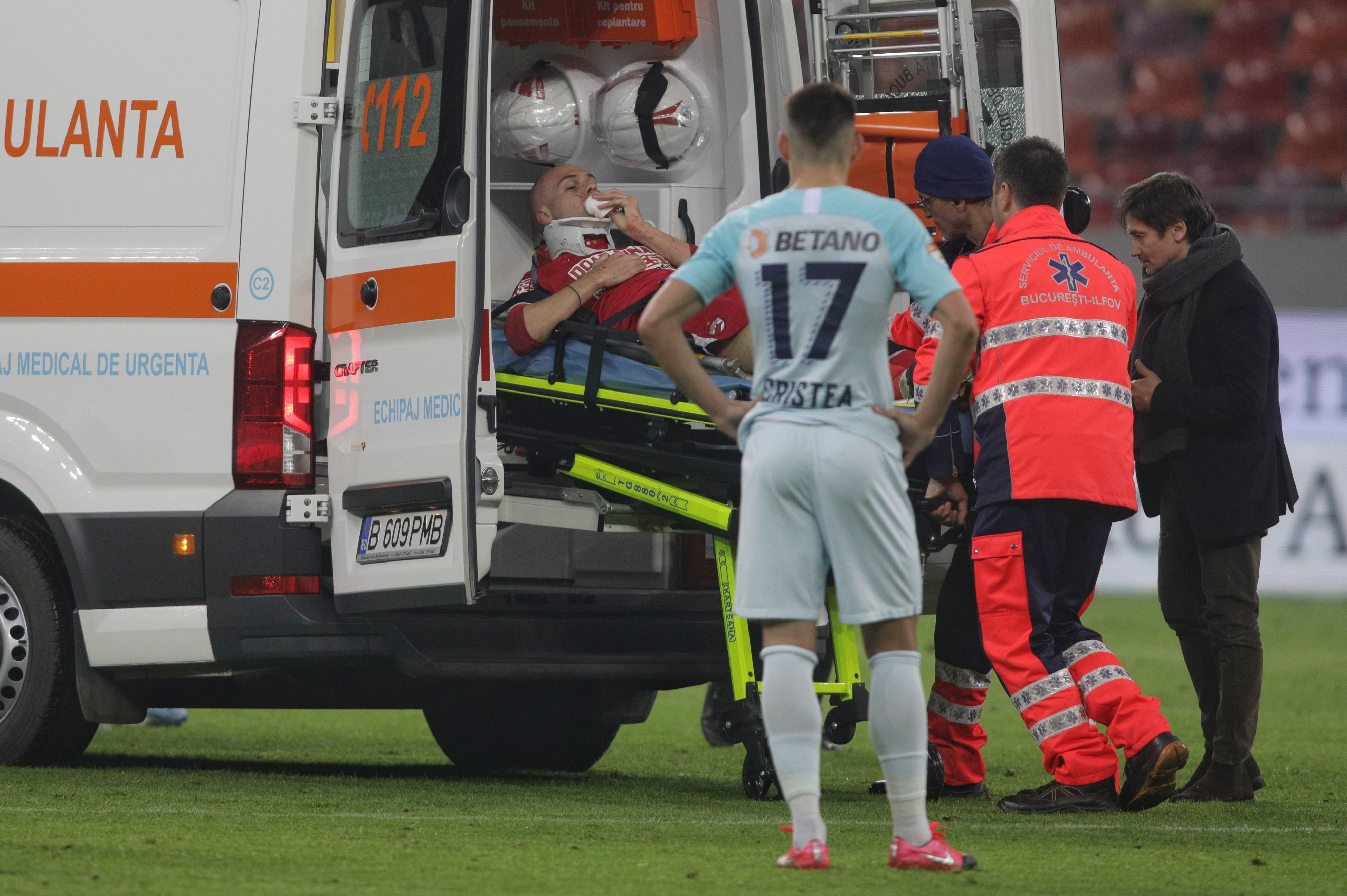 Cu sângele curgându-i din nas, sârbul a părăsit terenul conştient, pe targă, fiind transportat la spital. El a fost înocuit de Daniel Popa.