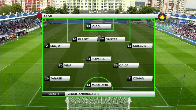FCSB: A. Vlad - Crețu, Planic, Cristea, Soiledis - Vână, Oaidă, Ov. Popescu - Moutinho, Fl. Tănase, Fl. Coman
