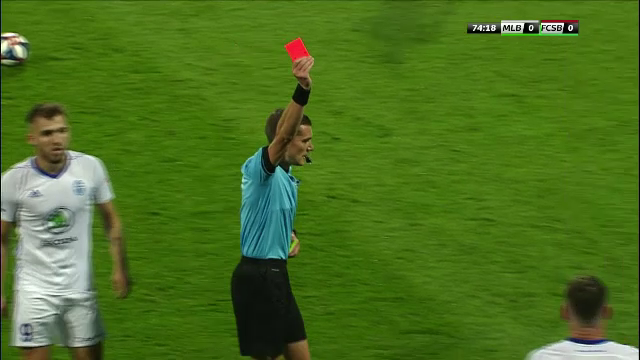 Minutul 75: Echipa Mlada Boleslav va juca în inferioritate numerică, după ce Krapka vede al doilea galben și este eliminat.