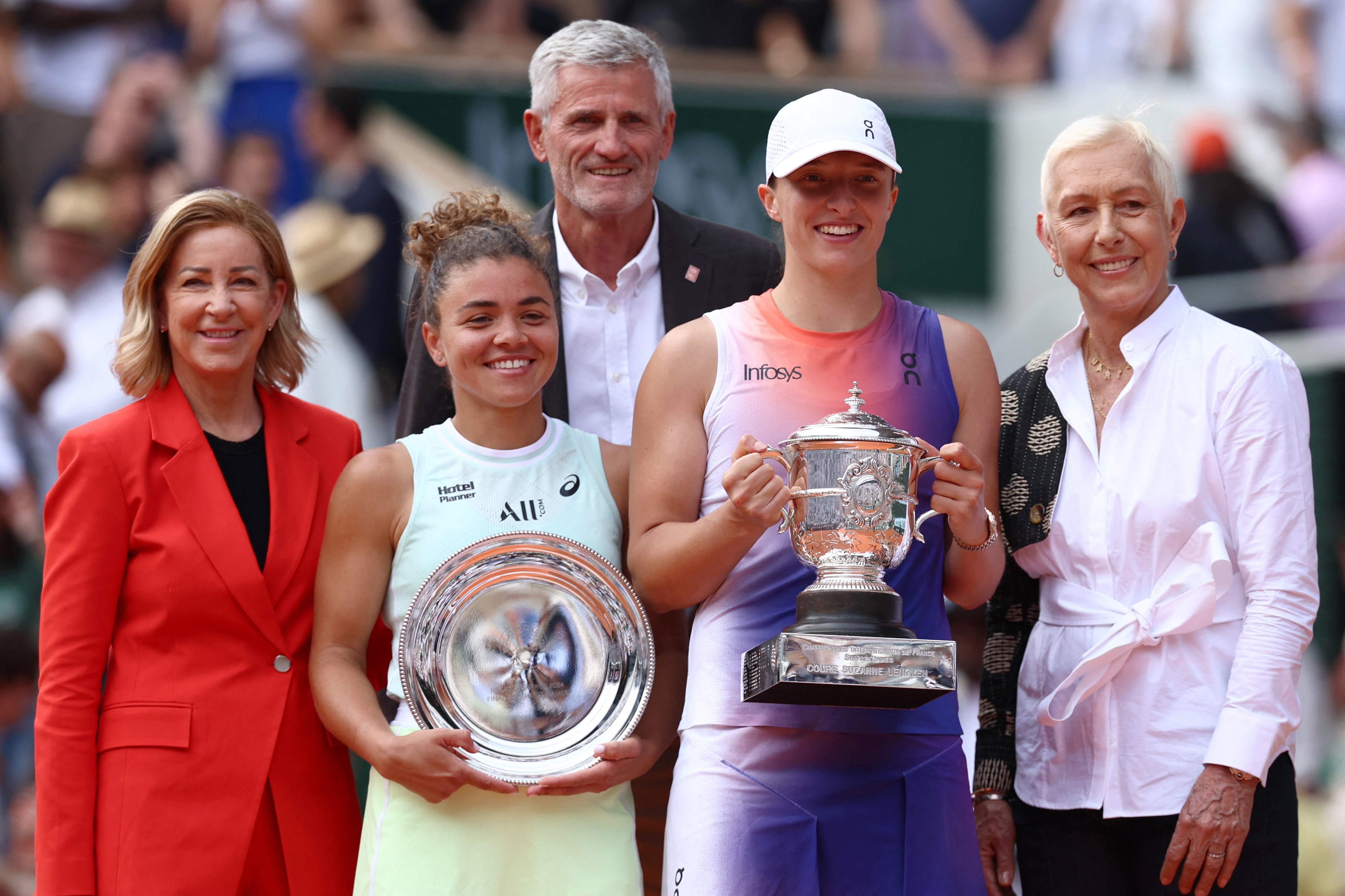 Ajungând la un palmares de 5-0 în finalele majore, Swiatek este, de asemenea, a treia jucătoare care câştigă primele sale cinci sau mai multe finale majore în Era Open, după Margaret Court şi Seles. Swiatek a triumfat în 2020, 2022, 2023 şi 2024 la French Open şi în 2022 la US Open.