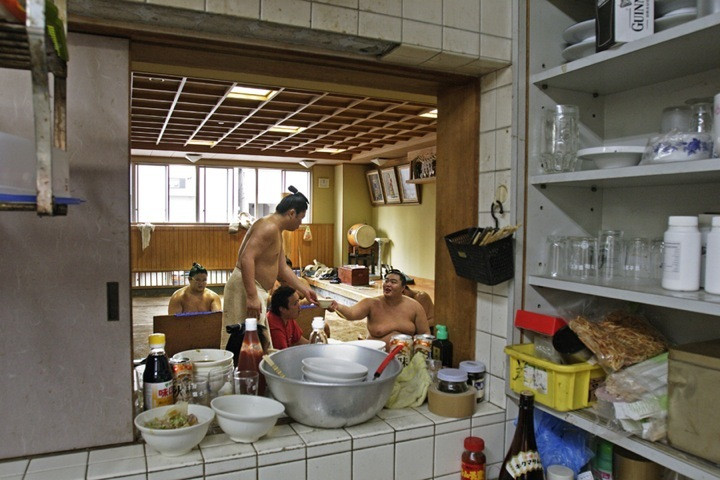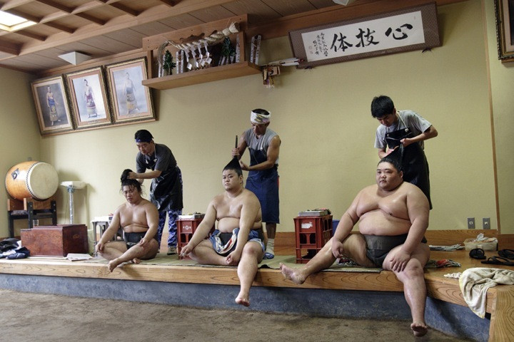 Fotograful italian Paolo Patrizi a fost printre luptatorii de sumo, a stat langa ei in bucatarie, a asistat la cel mai strict moment al zilei, cand isi fac parul, dar a si aflat despre implicarea mafiei in aceasta zona a sportului.