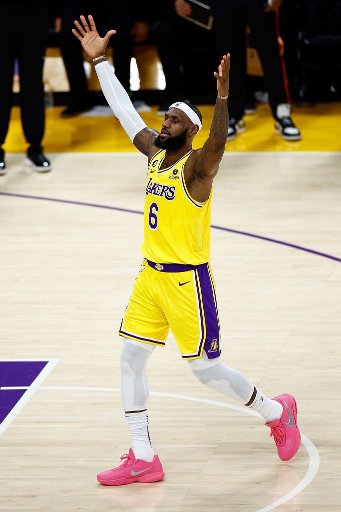 Înainte de sfertul patru, LeBron a fost felicitat în teren de Jabbar, aflat în sală şi care s-a retras din activitate în 1989.