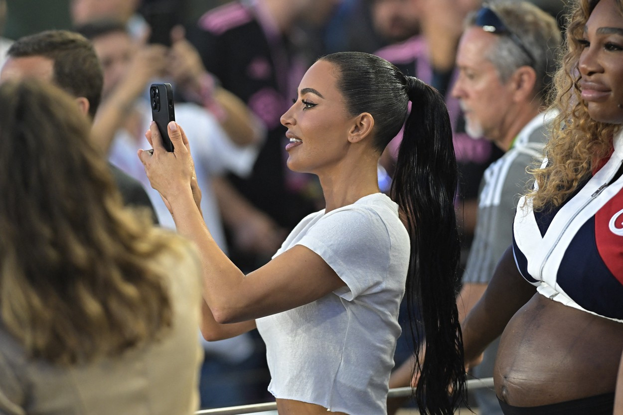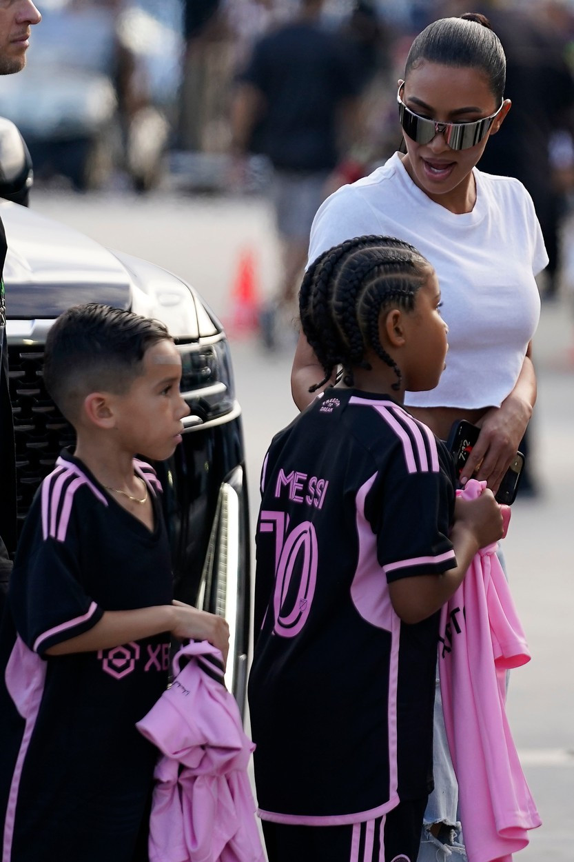 Kim Kardashian, în vârstă de 42 de ani, a fost la meci împreună cu fiul ei, Saint West, în vârstă de 7 ani, despre care a spus că este „obsedat de fotbal".