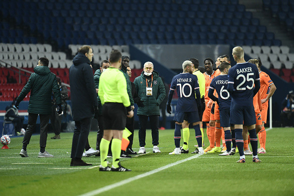 PSG vs Istanbul Basaksehir has been suspended following an alleged racist incident involving the 4th official towards Istanbul's assistant manager. pic.twitter.com/mLIkZiPK7u