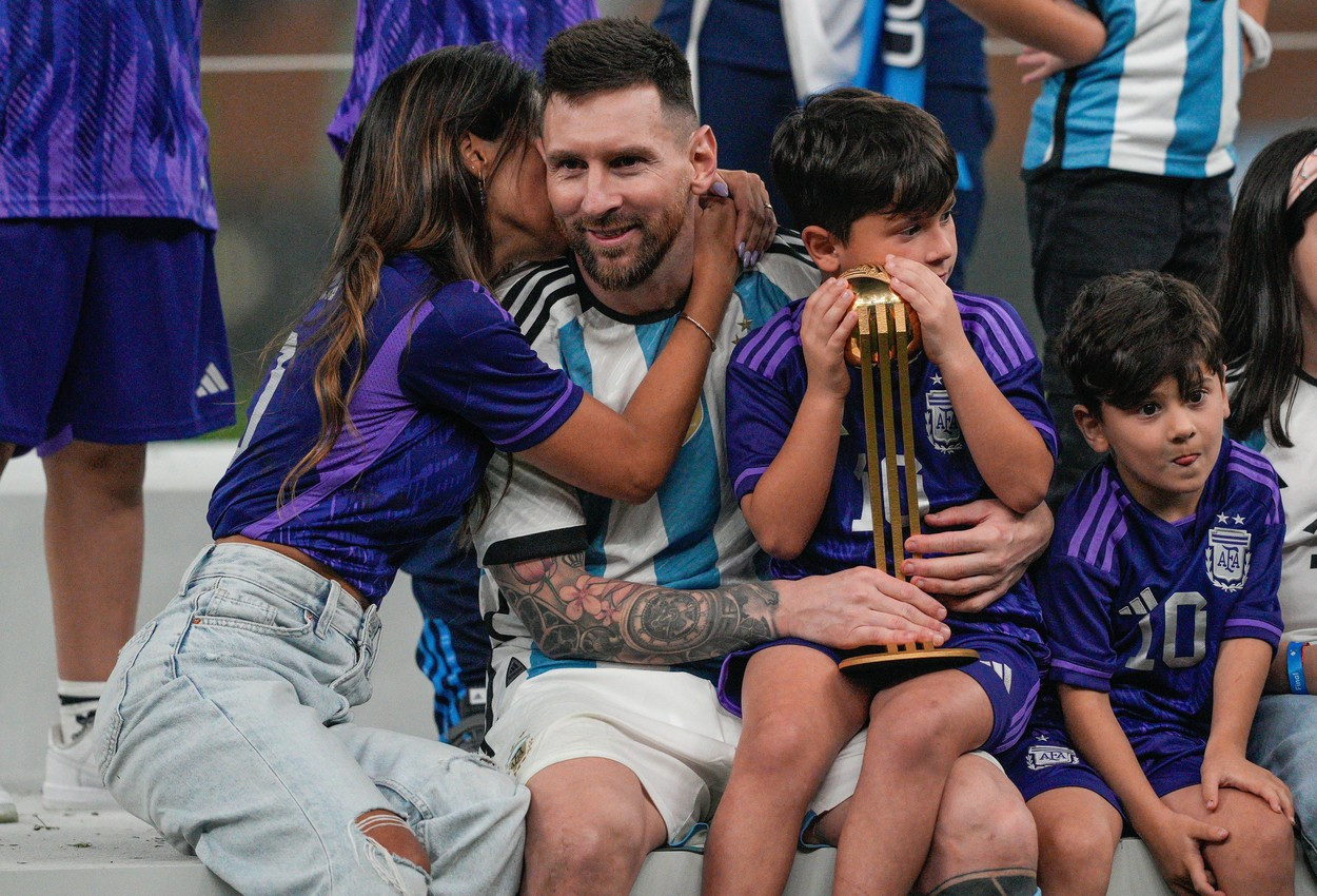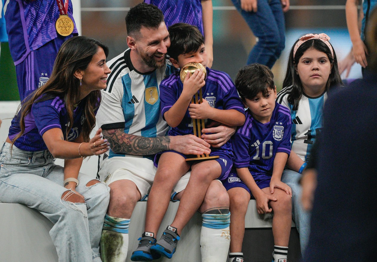 Fotbalistul Lionel Messi s-a bucurat de victorie și de trofeul de la Cupa Mondială din Qatar alături de frumoasa sa soție și de copiii lor.