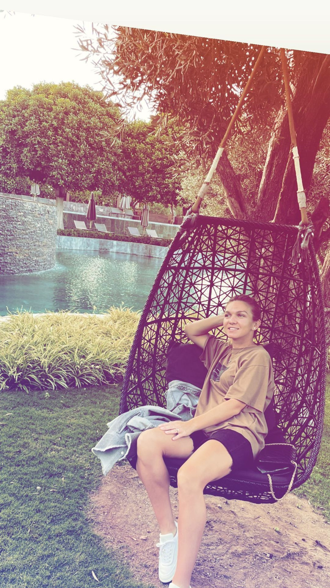 Într-una dintre fotografii, Simona Halep stă pe un balansoar, în alta apare masa celor doi, iar în alta sportiva este la sala de fitness.