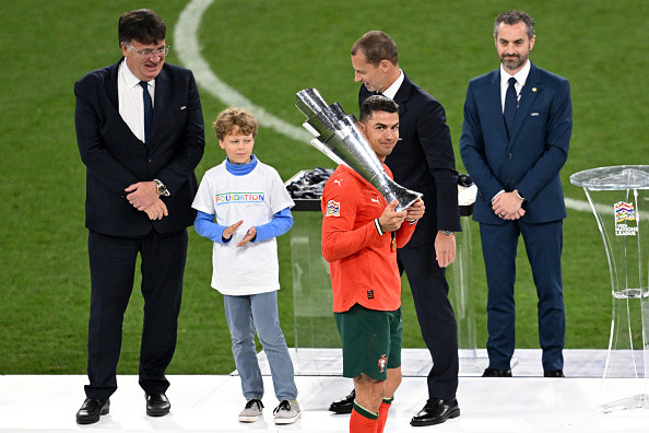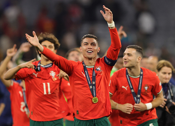 Cel de-al 138-lea gol pentru naţională al lui Ronaldo în a doua repriză a dus finala la lovituri de departajare, după un 2-2 cu Spania, cu atacantul de 40 de ani înlocuit privind de pe margine cum Portugalia a marcat toate cele cinci lovituri de departajare pentru a câştiga trofeul.