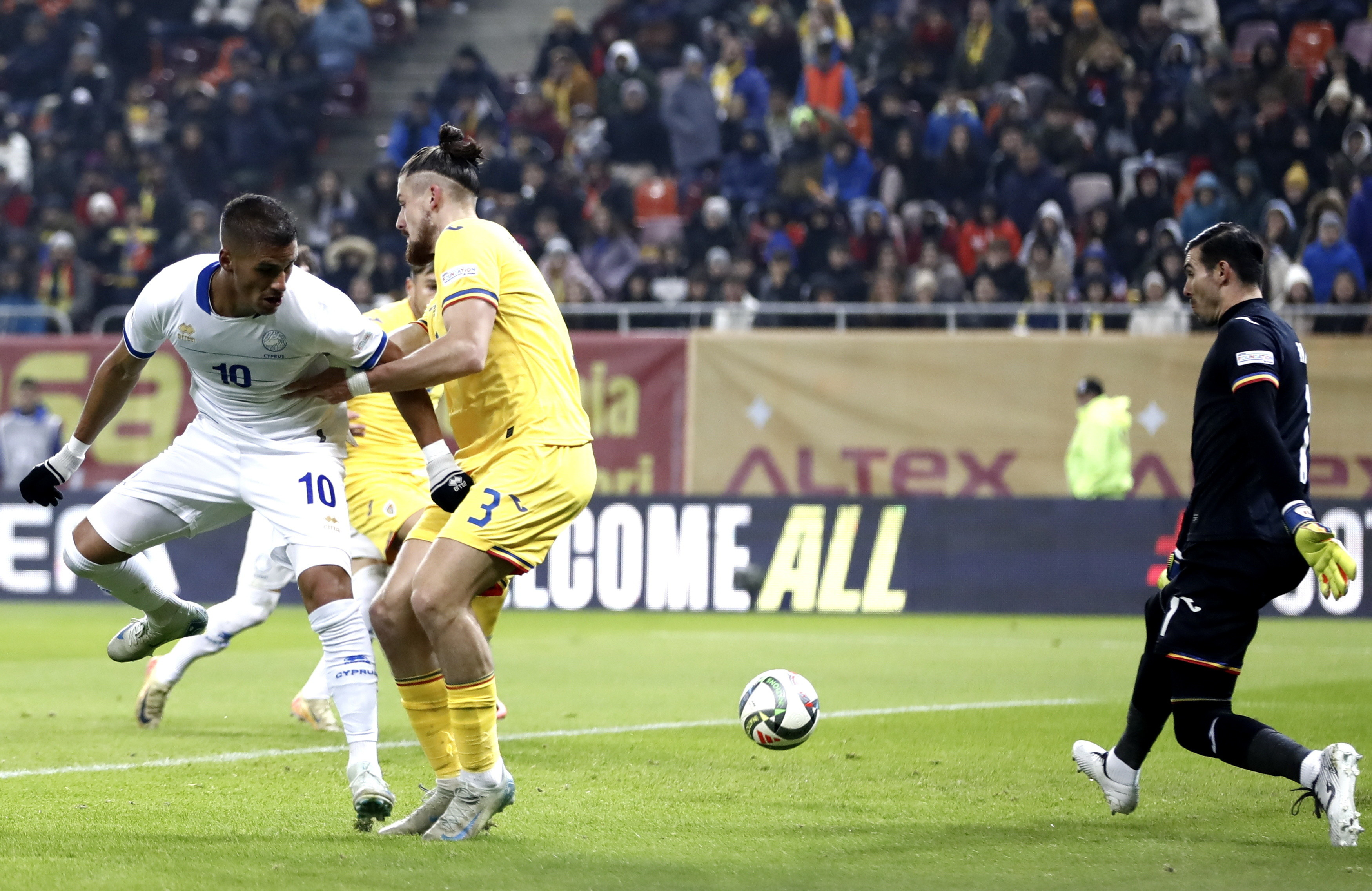 Min. 52 GOOOOOOLLL!!!: Pittas înscrie pentru Cipru, după o greșeală uriașă făcută de Drăgușin.