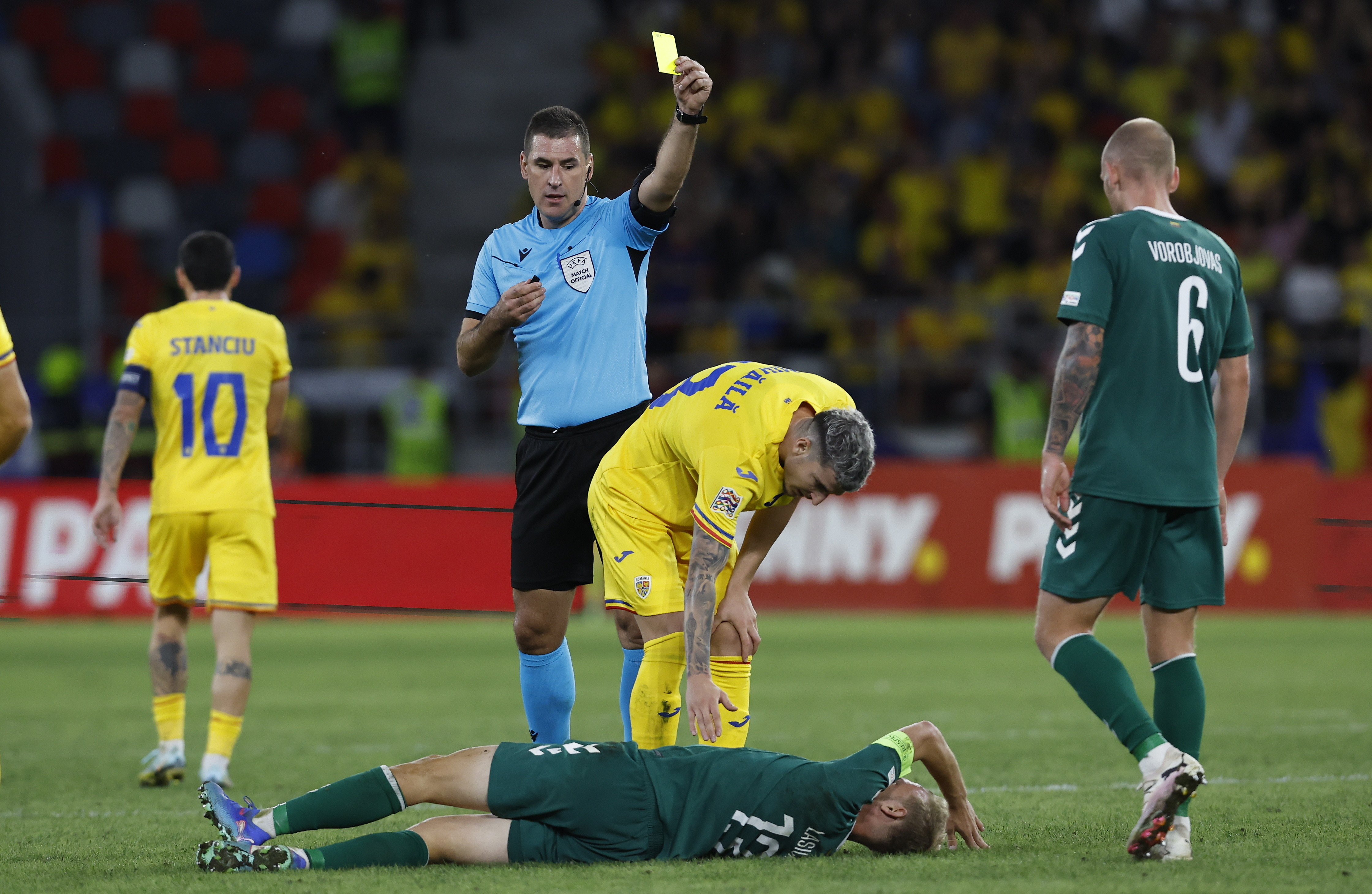 Min. 80: Arbitrul anulează golul 2 al lituanienilor după ce consultă VAR-ul.