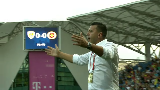 Minutul 32: Centrare periculoasă a lui Hagi, însă Rus nu reușește să trimită pe spațiul porții.