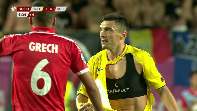 Minutul 14: O nouă ocazie a lui Florin Andone, însă portarul maltez Bonello reușește să rețină.