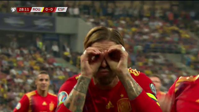 Minutul 11: Corner pentru Spania. Sergio Ramos trimite cu capul în vinclu, dar Tătărușanu reușește să pareze din nou.
