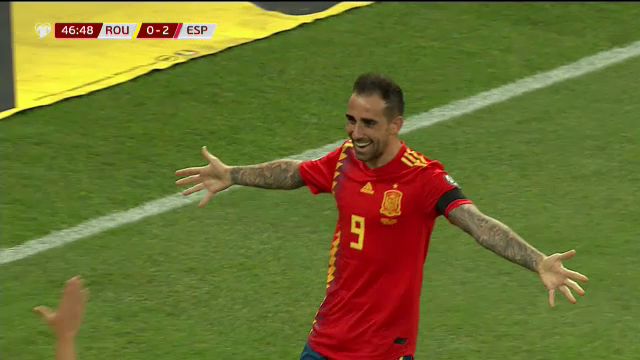 Minutul 47: GOL Spania! Paco Alcacer înscrie după după ce Jordi Alba l-a lăsat singur în fața porții.