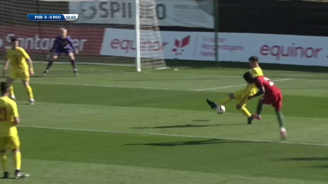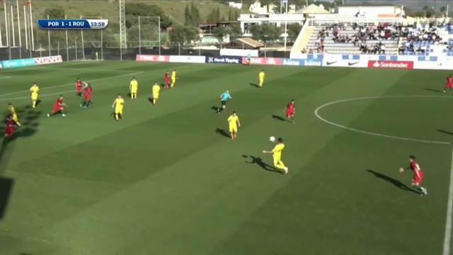 Minutul 35: GOL ROMÂNIA! Ianis Stoica deschide scorul pentru tricolori, după ce portarul protughez a respins greșit o minge.