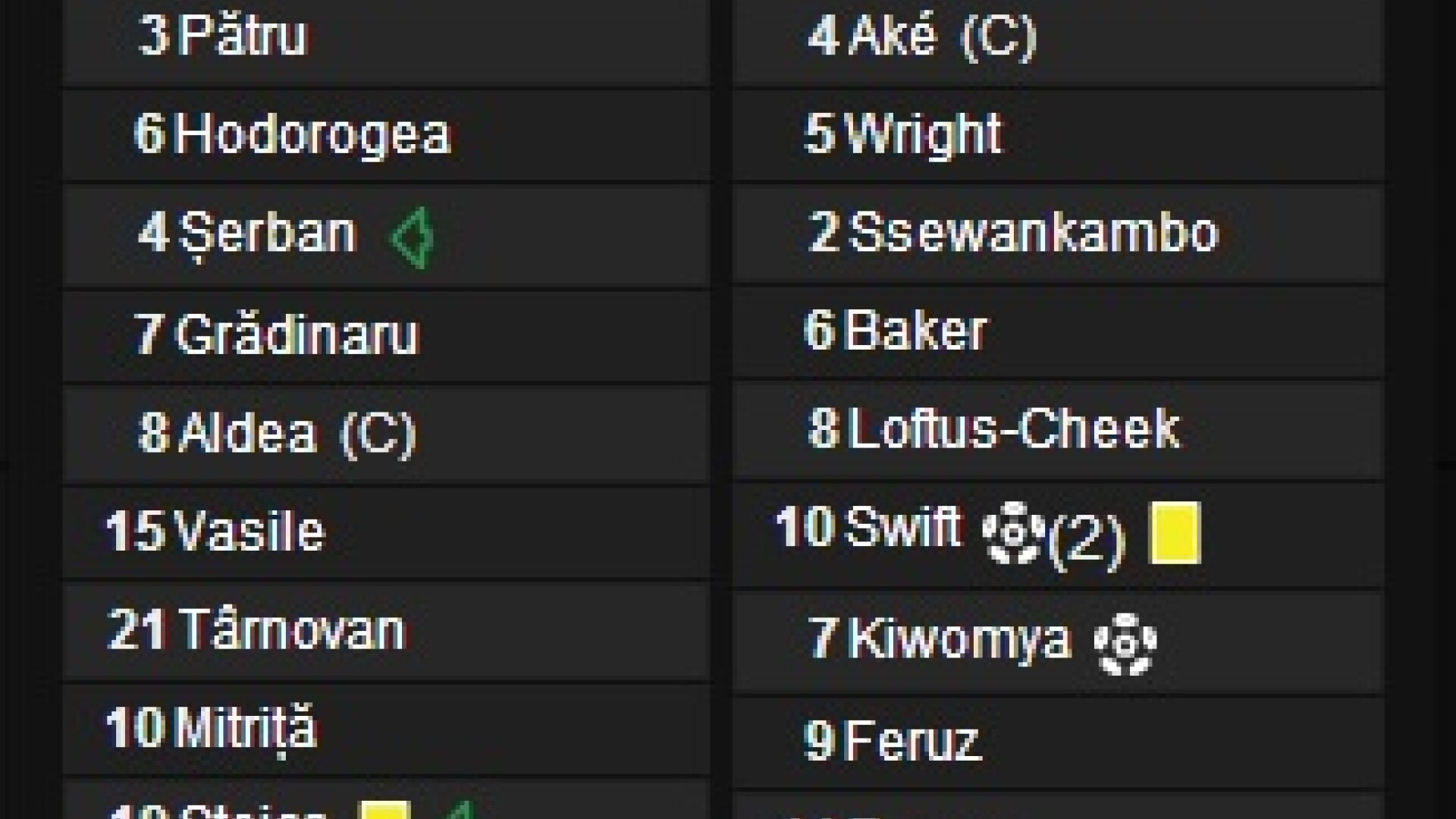 0-1: Chelsea a deschis scorul dupa o actiune personala a lui Schurrle pe partea stanga. Acesta i-a pasat lui Eto'o, care a facut o preluare prea larga, iar mingea a ajuns la Ramires care a deviat din 7 metri pe langa Tatarusanu