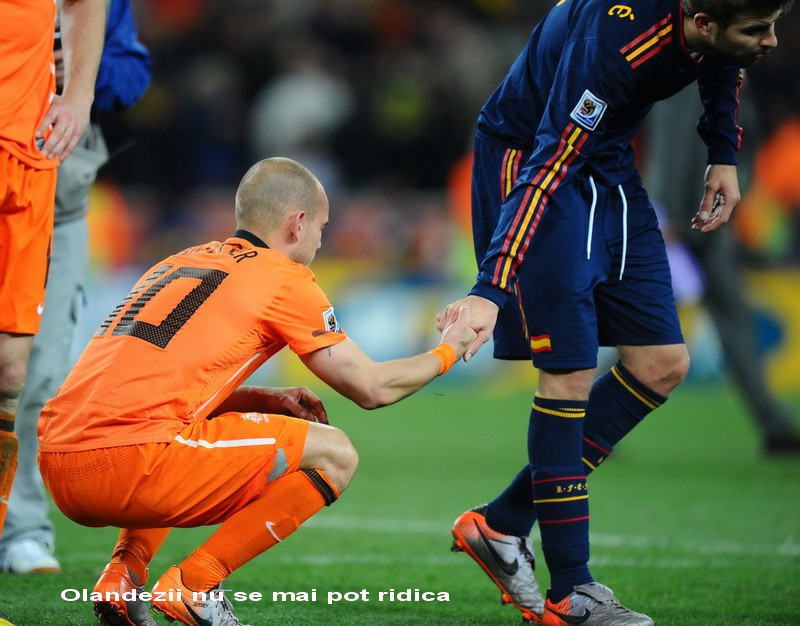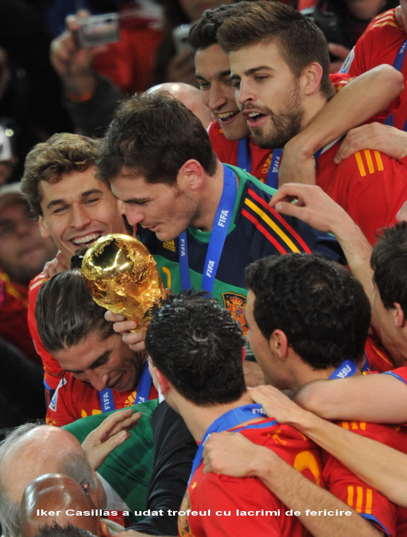 Spaniolii nu au uitat ca au trecut si prin momente delicate. Marcatorul golului care a adus Cupa Mondiala in Spania, Iniesta, i-a dedicat reusita lui Dani Jarque, fotbalistul lui Espanyol care a decedat anul acesta.