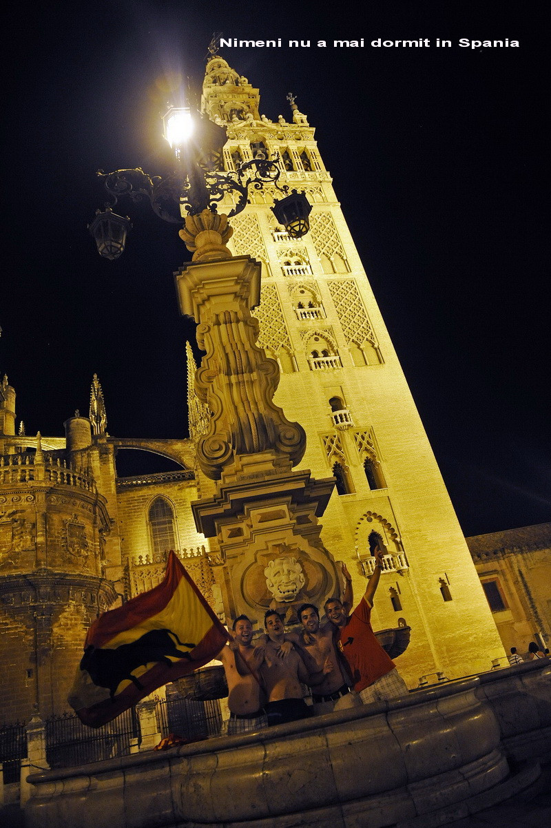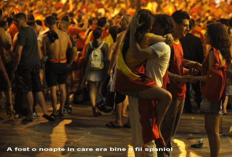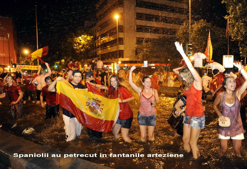 Lacrimi multe, sampanie, femei goale in piscina, artificii si confetti din belsug. Asa au sarbatorit spaniolii prima Cupa Mondiala din istoria lor.