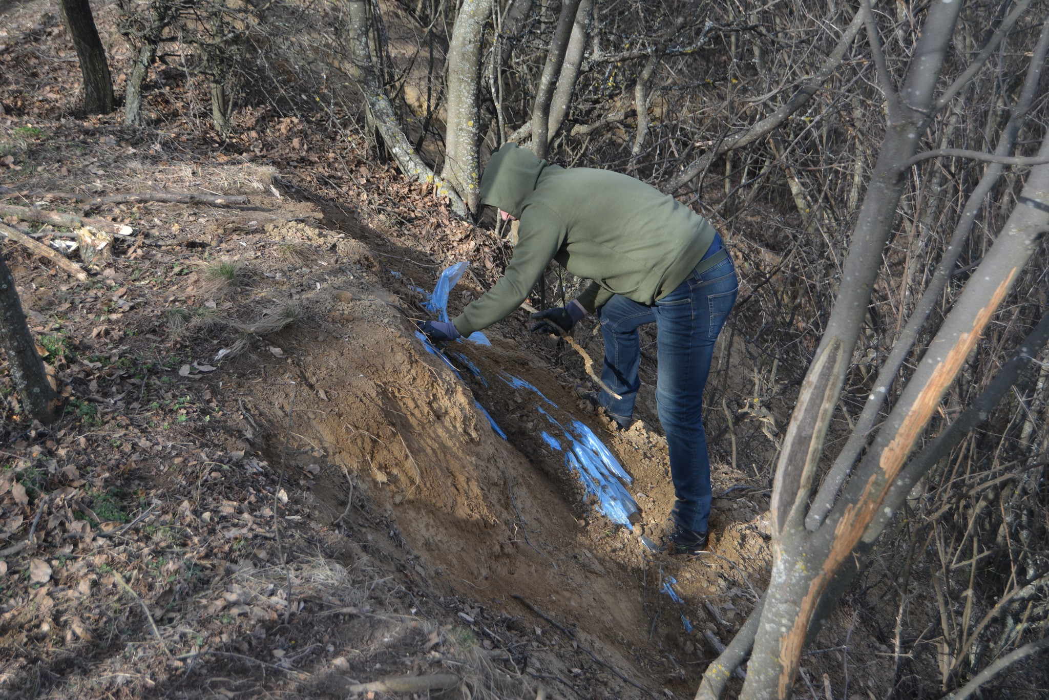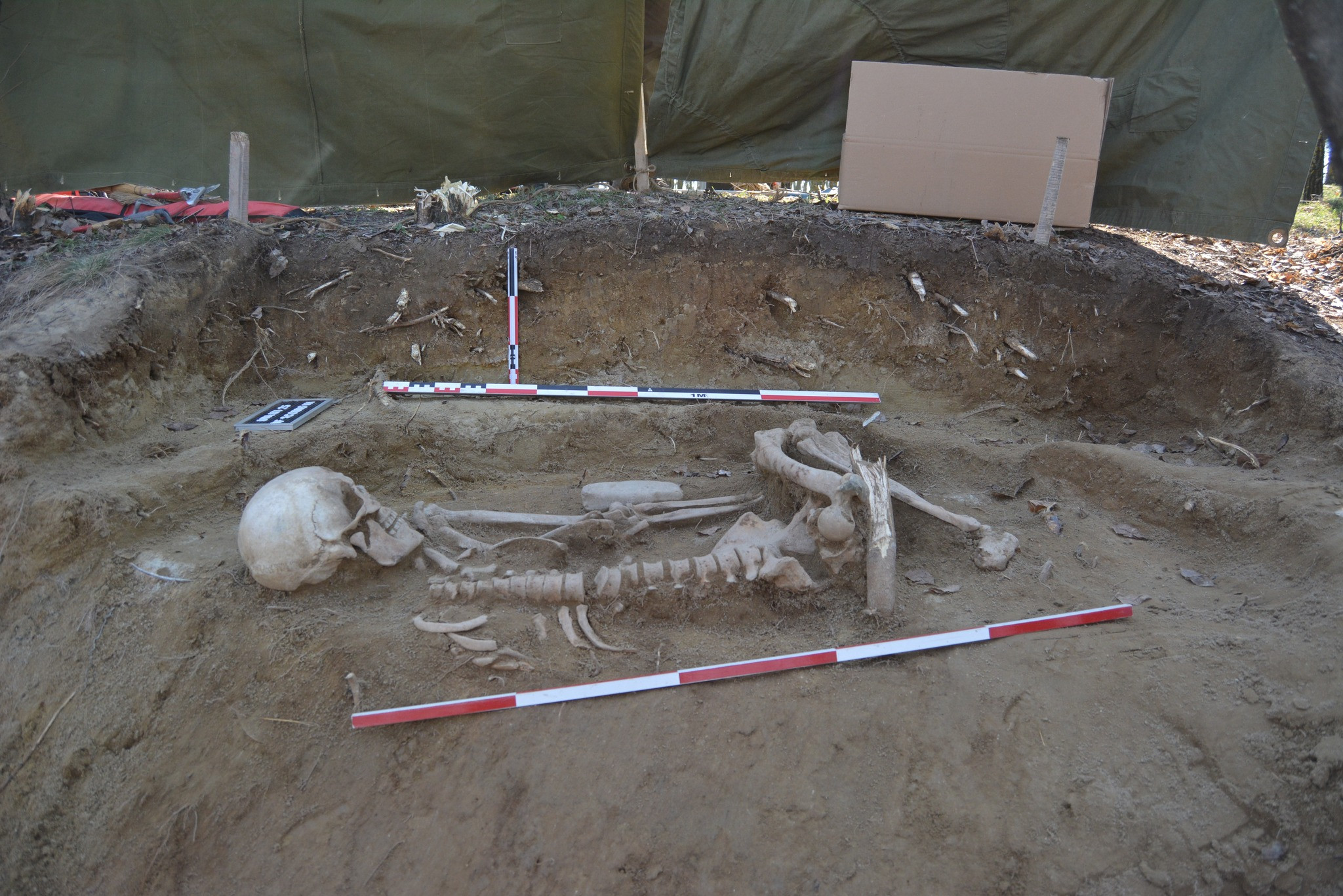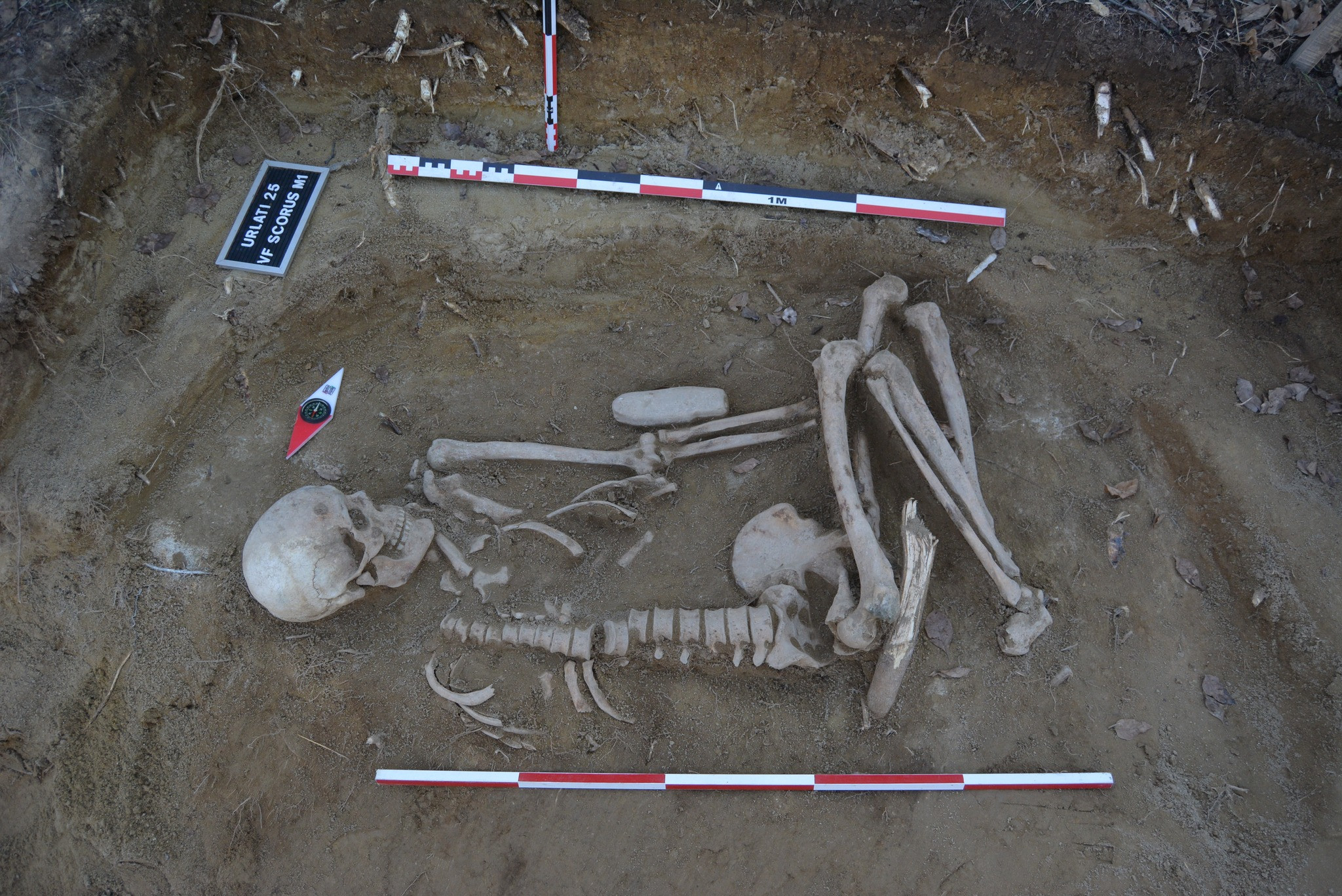 "În luna martie, un colectiv de arheologi din cadrul Muzeului Judeţean de Istorie şi Arheologie Prahova format din Alin Frînculeasa, Octav Negrea şi Eduard Ghinea s-a deplasat pe teren pentru a cerceta zona în care au apărut oasele umane. În urma intervenţiei arheologice a fost descoperit un schelet uman parţial prăbuşit în râpa naturală odată cu pâmântul desprins.
