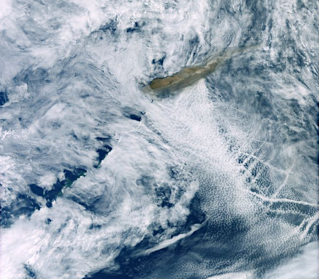 Potrivit datelor, cenușa a atins o altitudine de 10 până la 16 kilometri.