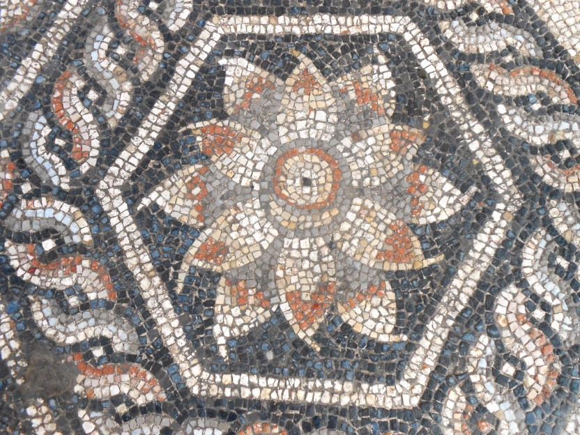 El a adăugat că mozaicul de pe podeaua uneia dintre case constă în şase imagini hexagonale cu flori de lotus, înconjurate de un cadru circular tipic.
