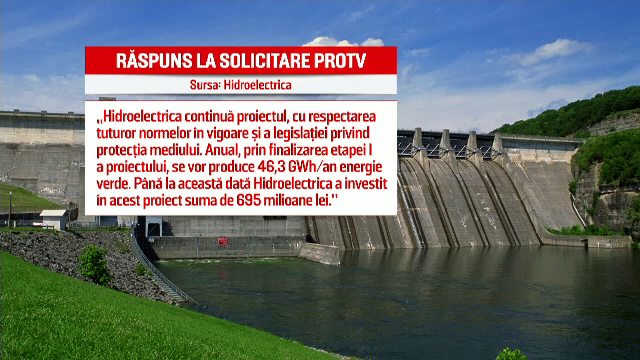 Societatea susţine că hidrocentrala a fost aprobată cu mult timp înaintea apariţiei regulilor de mediu şi că va respecta condiţiile actuale din legislaţie, dar că nu a sistat niciodată lucrările. Investiţia de până acum, trece de 140 de milioane de euro.