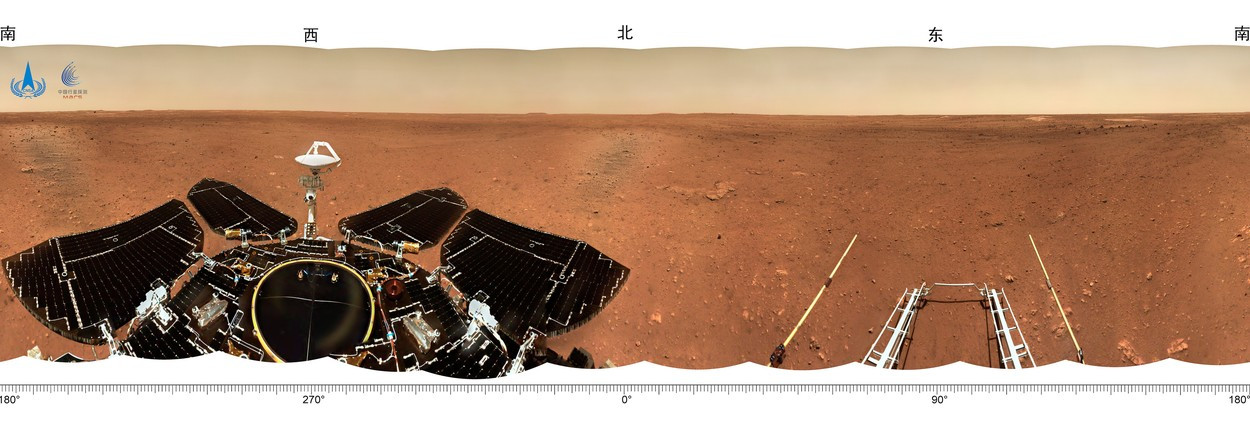 Filmarea, prezentată de Administraţia Spaţială de la Beijing, redă panorama zonei de aterizare, peisajul marţian şi un selfie al roverului cu platforma de aterizare.