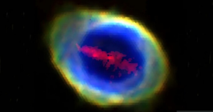 Structura, care a fost găsită în interiorul Nebuloasei Inelare - un nor faimos și colorat format atunci când o stea asemănătoare Soarelui, aflată pe moarte, și-a eliberat straturile exterioare - este de aproximativ 500 de ori mai lată decât orbita lui Pluto și se află la 2.283 de ani-lumină distanță, scrie BBC.