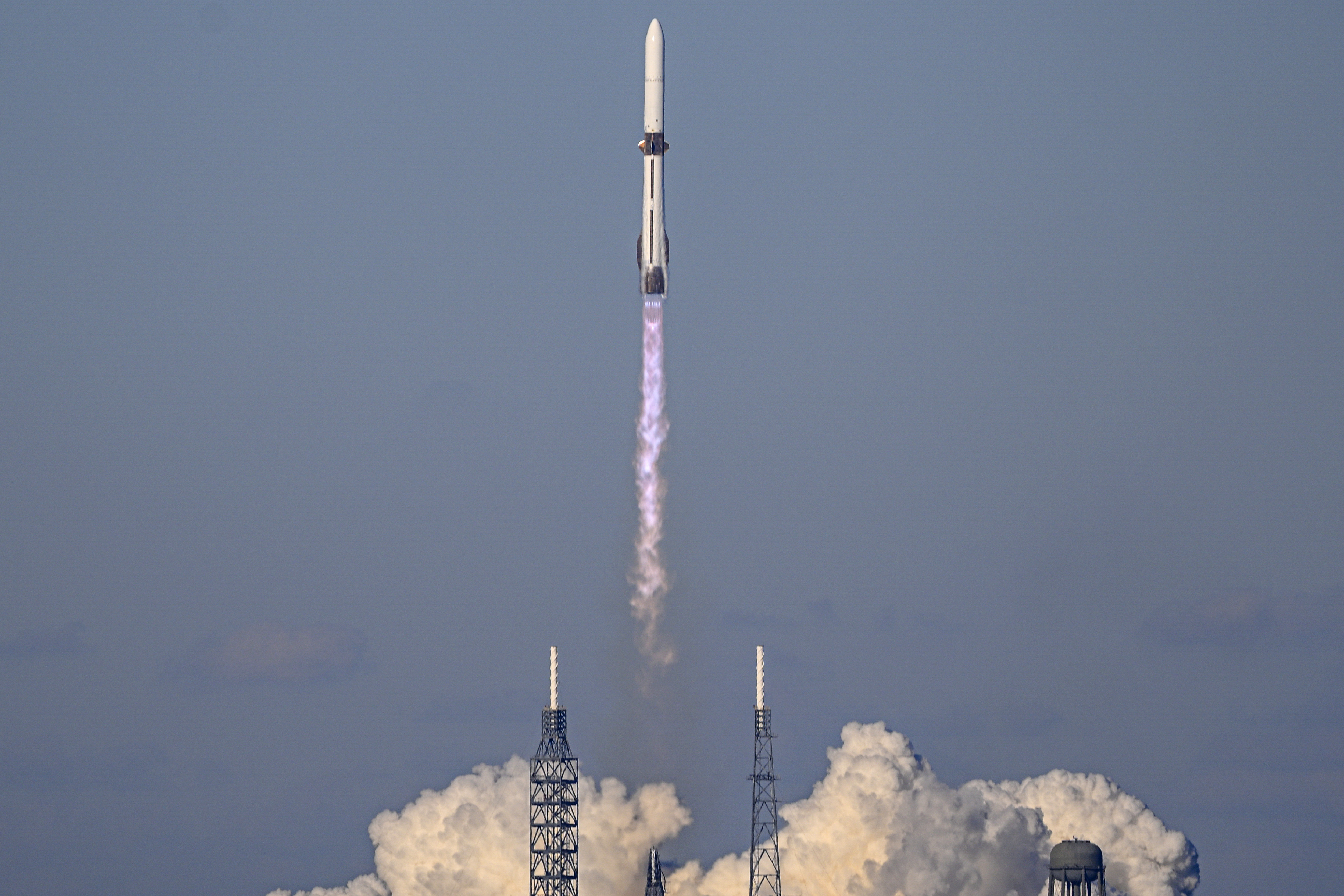 Racheta, una dintre cele mai mari și mai puternice construite vreodată de compania Blue Origin, deținută de Jeff Bezos, transportă două sonde pe orbită.
