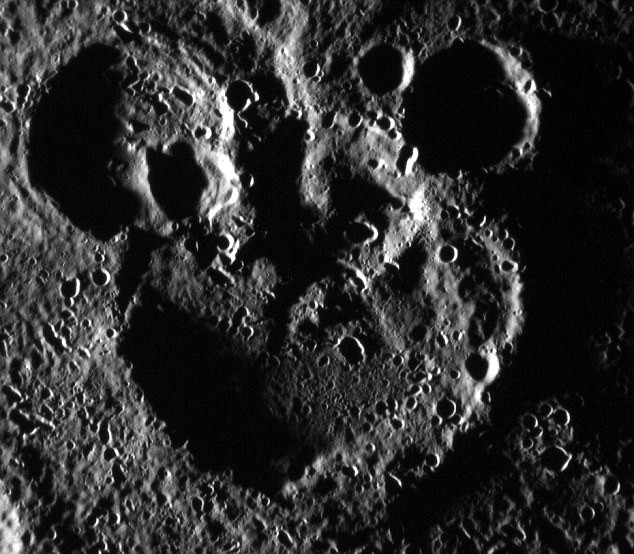 Mai exact, cand cei de la NASA au privit una din cele 100.000 de imagini realizate anul trecut de racheta Messenger au sesizat cum craterele formau impreuna imaginea celebrului personaj Disney, Mickey Mouse.