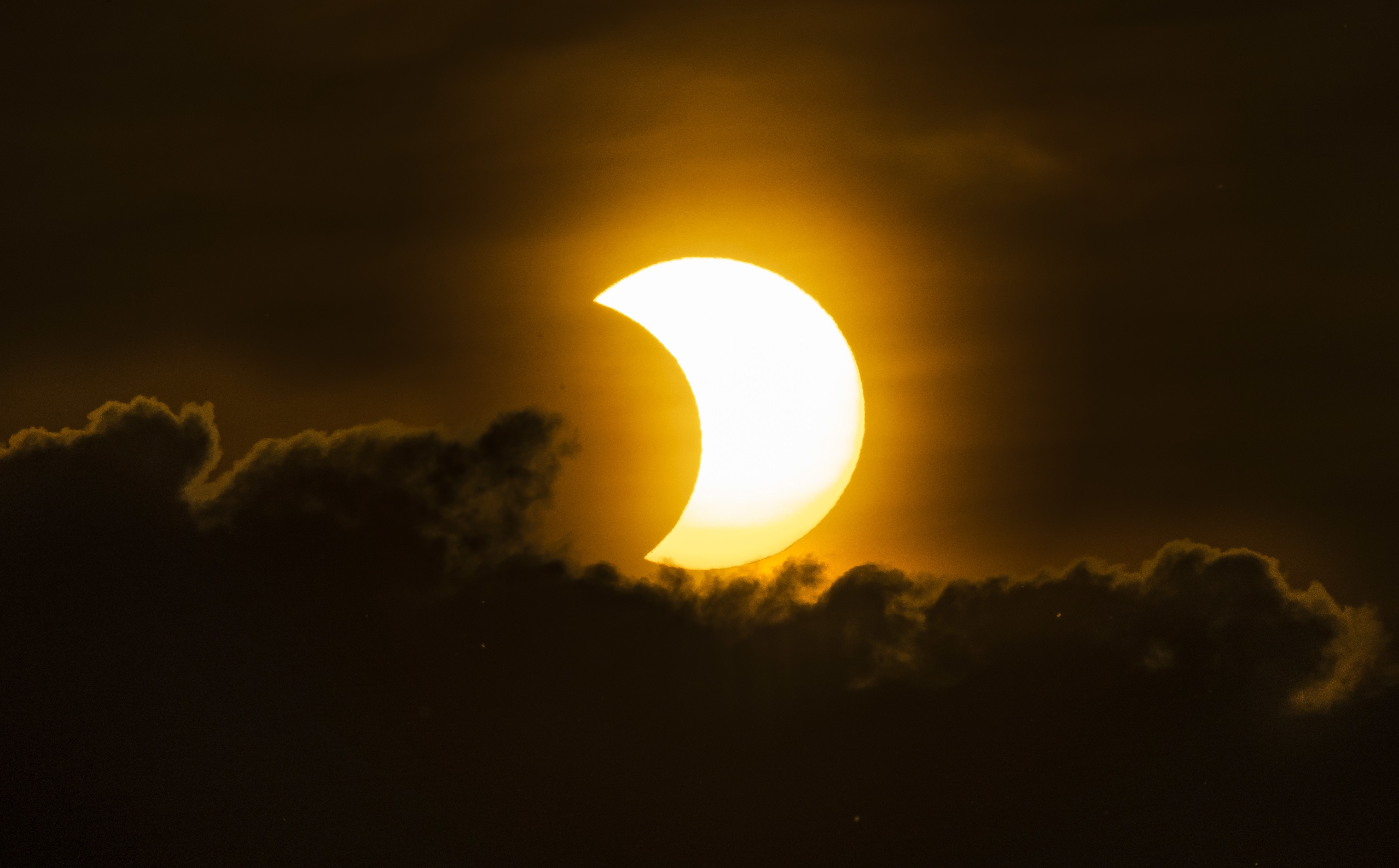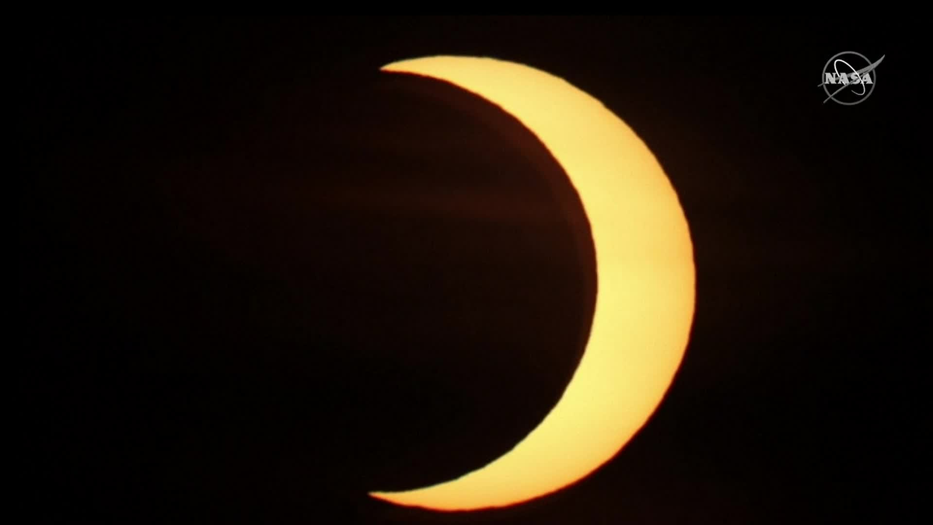 La punctul maxim al aşa-numitei eclipse inelare, de pe Pământ s-a putut vedea Luna ajungând treptat în dreptul Soarelui, care s-a transformat, timp de câteva minute, într-un inel luminos subţire, ca un ''cerc de foc'' pe cerul de iunie.