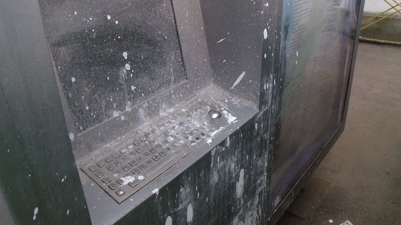In 2007, Primaria Timisoara a achizitionat cinci infochioscuri turistice pentru care a platit 22.000 de euro, bani de la bugetul local. De doi ani, unul singur mai este functional: cel de la Gradina Zoologica. Ce s-a intamplat cu restul? Fie au s-au stricat, fie au fost vandalizate. Unul dintre infochioscuri a fost adus la Primaria Timisoara. Acum zace in curtea institutiei intre un zid si o ghena de gunoi, plin de praf si de var. Chiar daca ar functiona, ar fi inaccesibil.