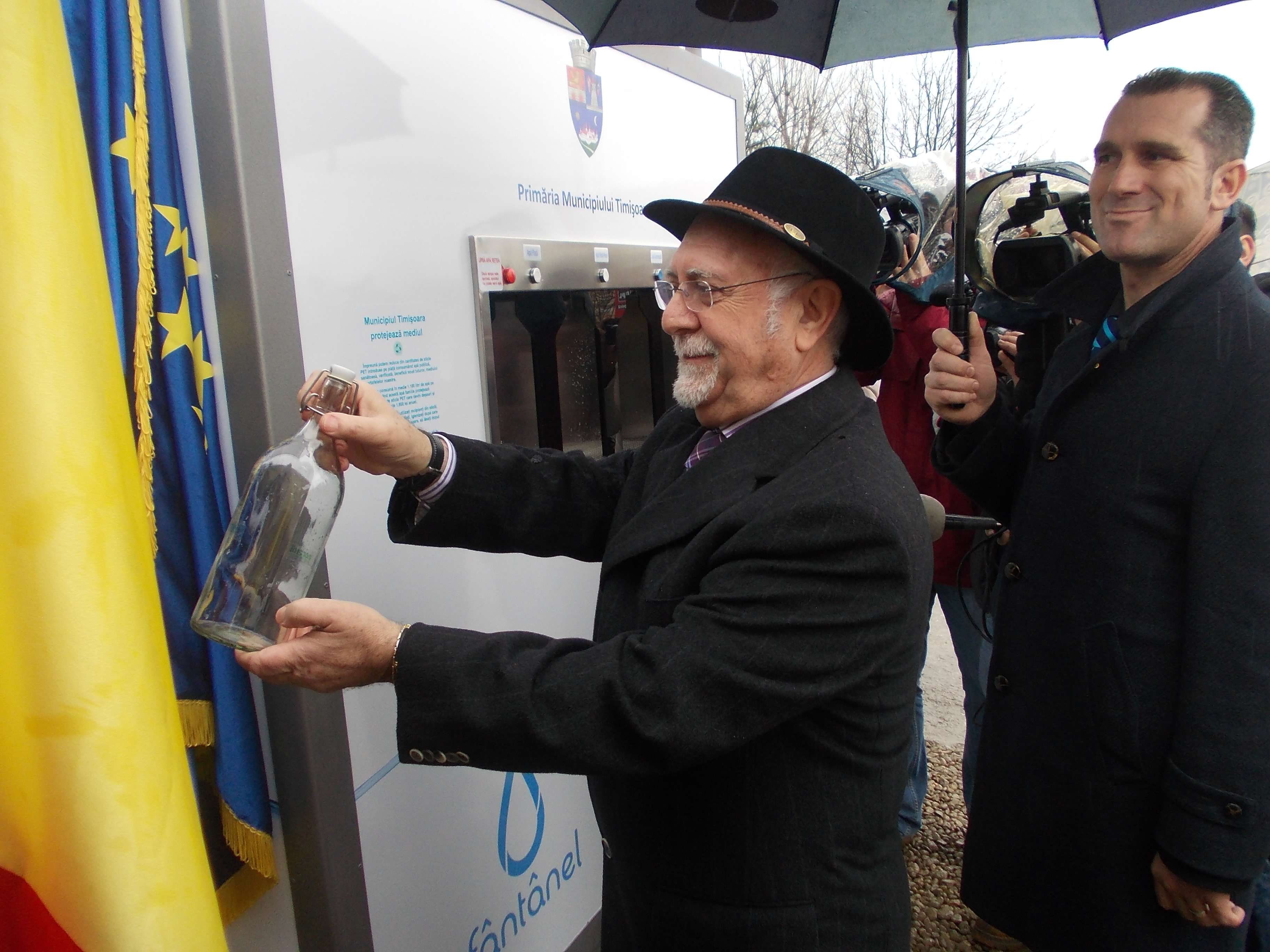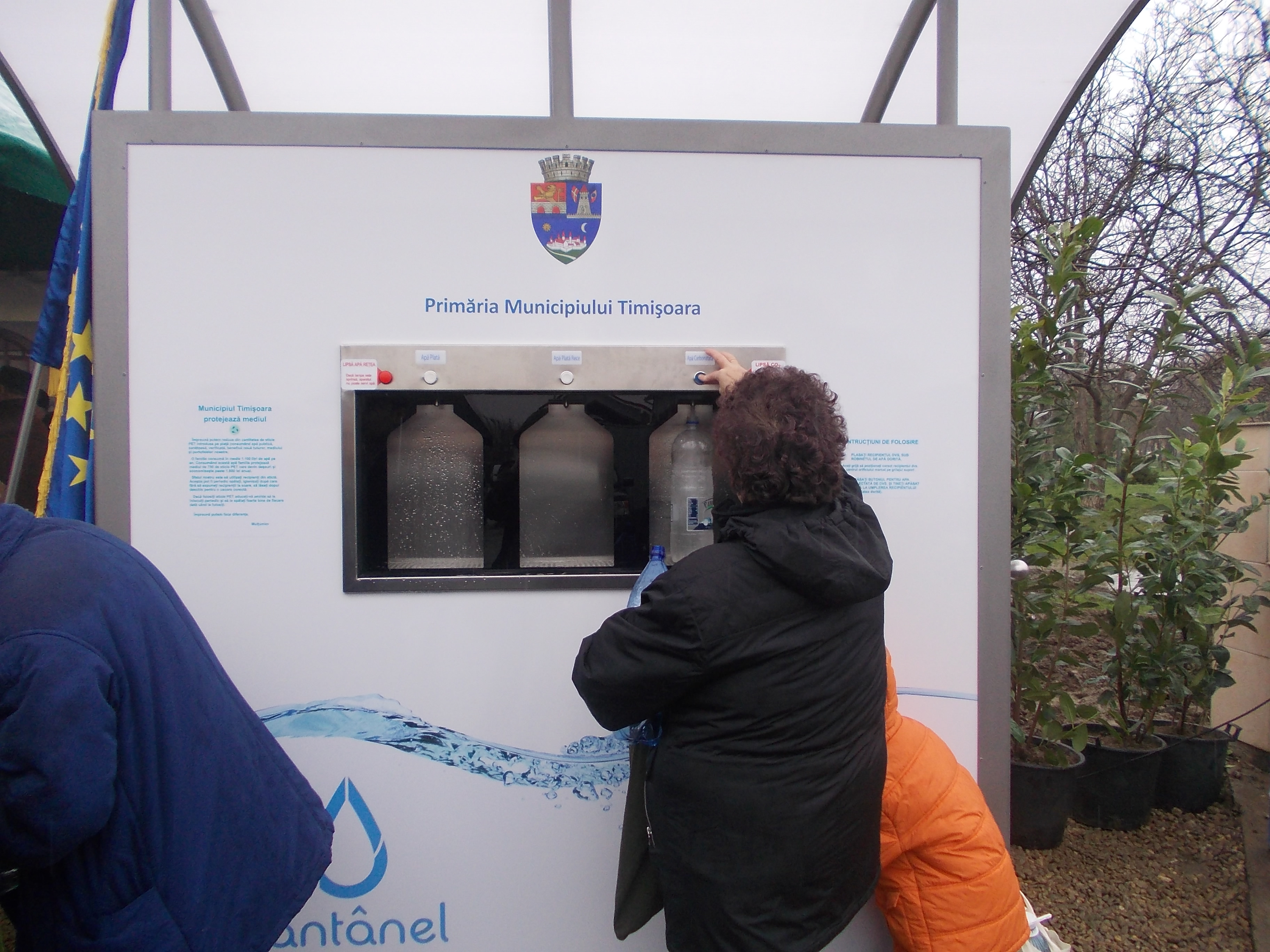 Timisorenii nu trebuie decat sa vina cu o sticla de maximum cinci litri si sa apese pe un buton. Apa plata va fi gratuita tot timpul, insa apa carbogazificata va avea o taxa de 50 de bani pentru doi litri, de luna viitoare.