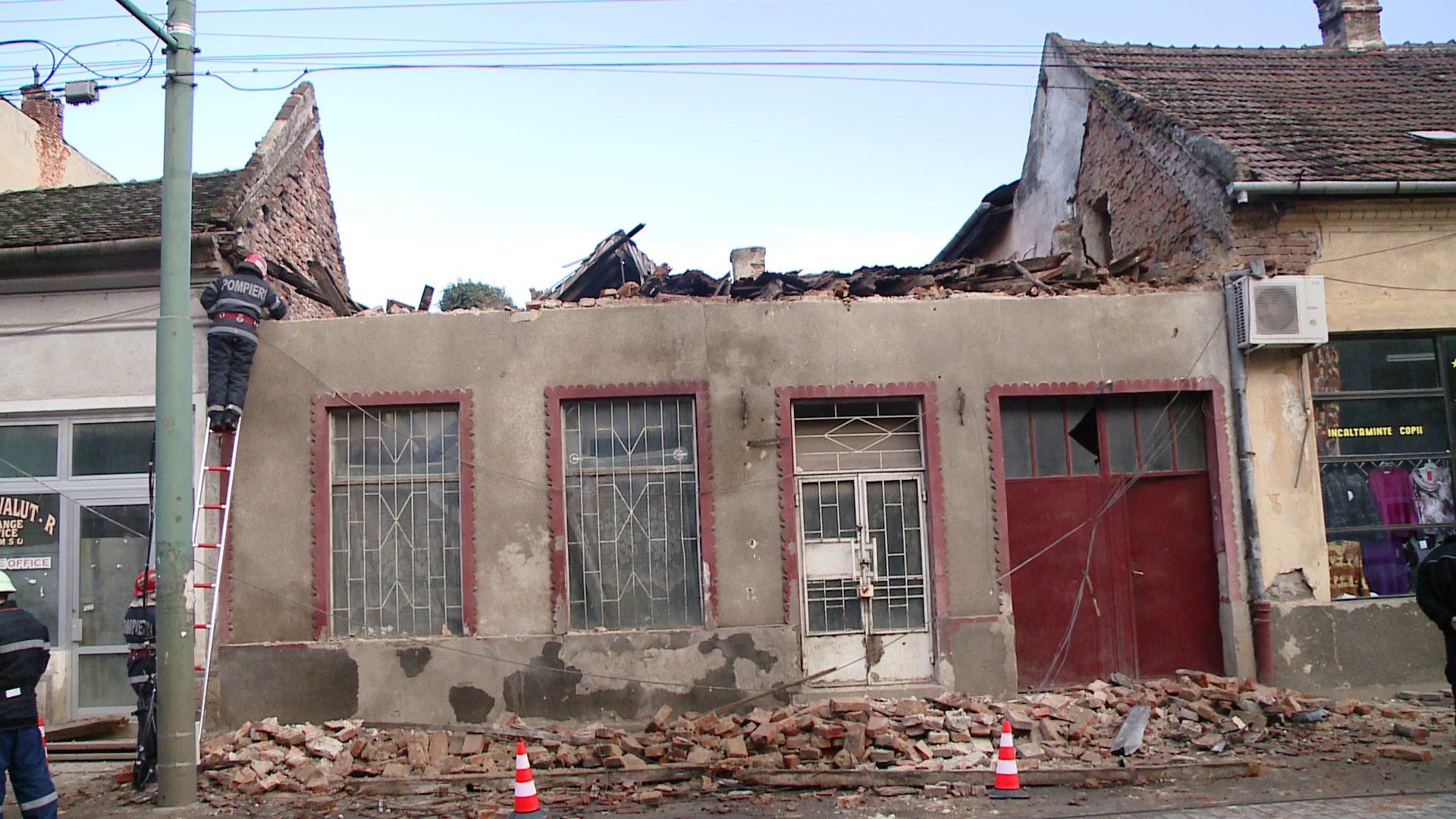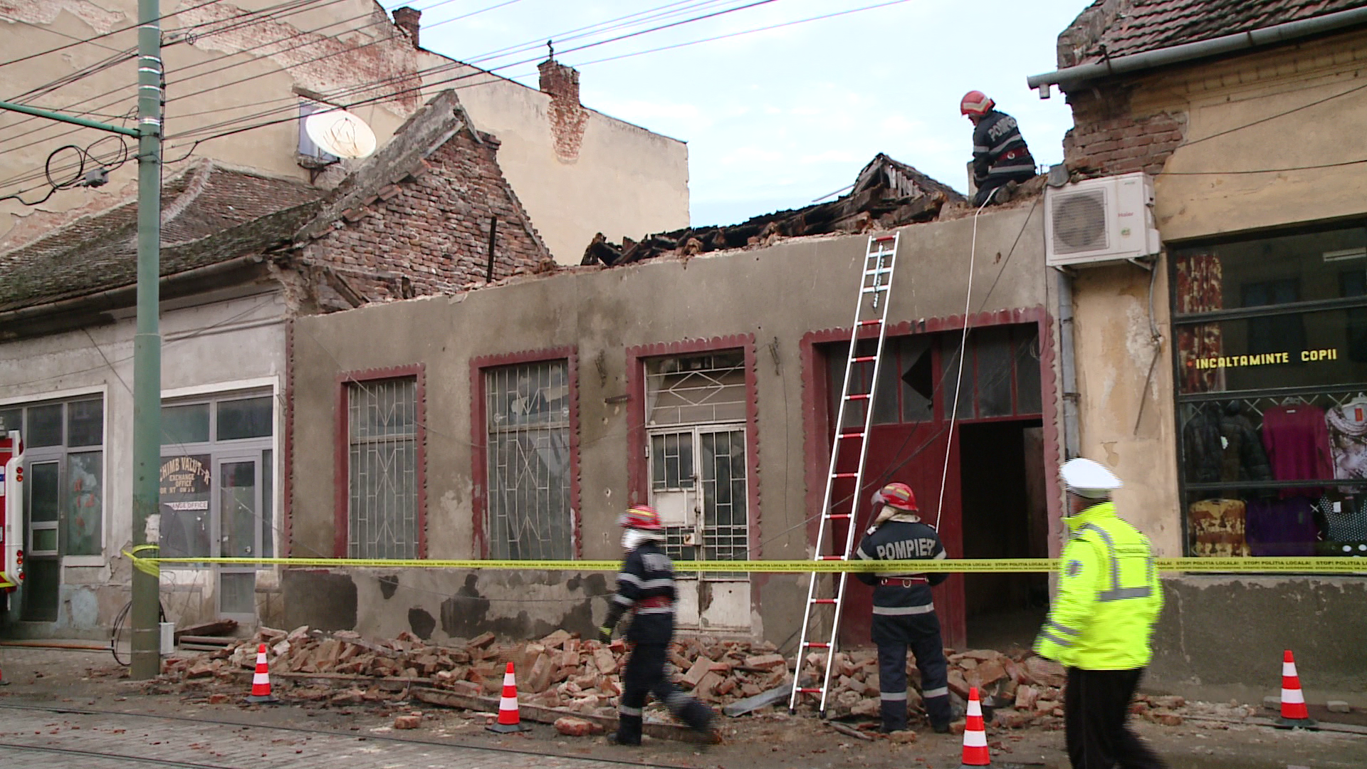 La fata locului a sosit un echipaj de pompieri care a dat jos de pe acoperis bucatile ramase pentru a preveni si alte incidente. Cladirea se afla in administrarea Primariei si nu este locuita. Familiile care locuiesc in aceeasi curte spun ca deseori au facut sesizari la Primarie, cu privire la pericolul la care sunt expusi locuind langa cladirea veche, dar ca nu au primit nici un raspuns.