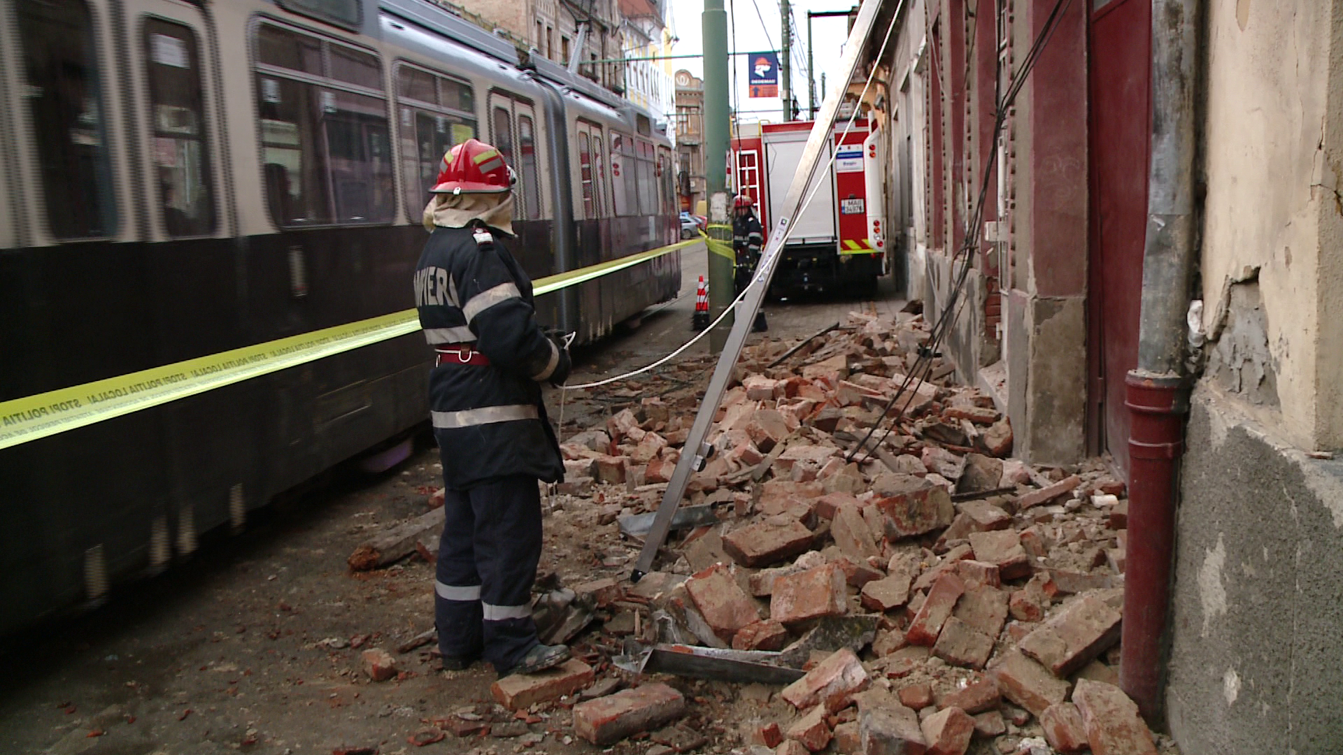Incidentul s-a petrecut in aceasta dupa-amiaza in zona Pietei Traian din Timisoara. Din fericire, in momentul prabusirii, pe trotuarul din fata casei nu trecea nici o persoana.