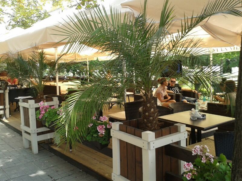 Administratorul unei terase din centrul Timisoarei, situata in apropierea Catedralei Mitropolitane, si-a amenajat in urma cu un an unitatea comerciala cu palmieri.