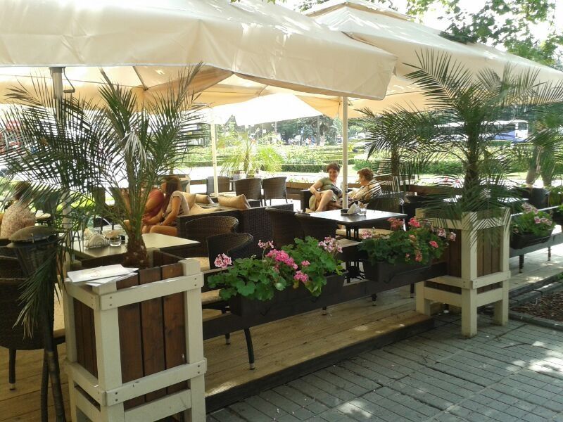 "Terasa a fost amenajata cu jardiniere inalte cu palmieri, produsele noastre de cofeterie si gelaterie fiind facute cu produse naturale, nu cu prafuri, incercand sa aducem orasului nostru o cofetarie adevarata si sa reinviem spiritul Timisoarei interbelice, a centrului acestuia care avea atat cofetarii deosebite, cat si palmieri", a spus administratorul terasei.