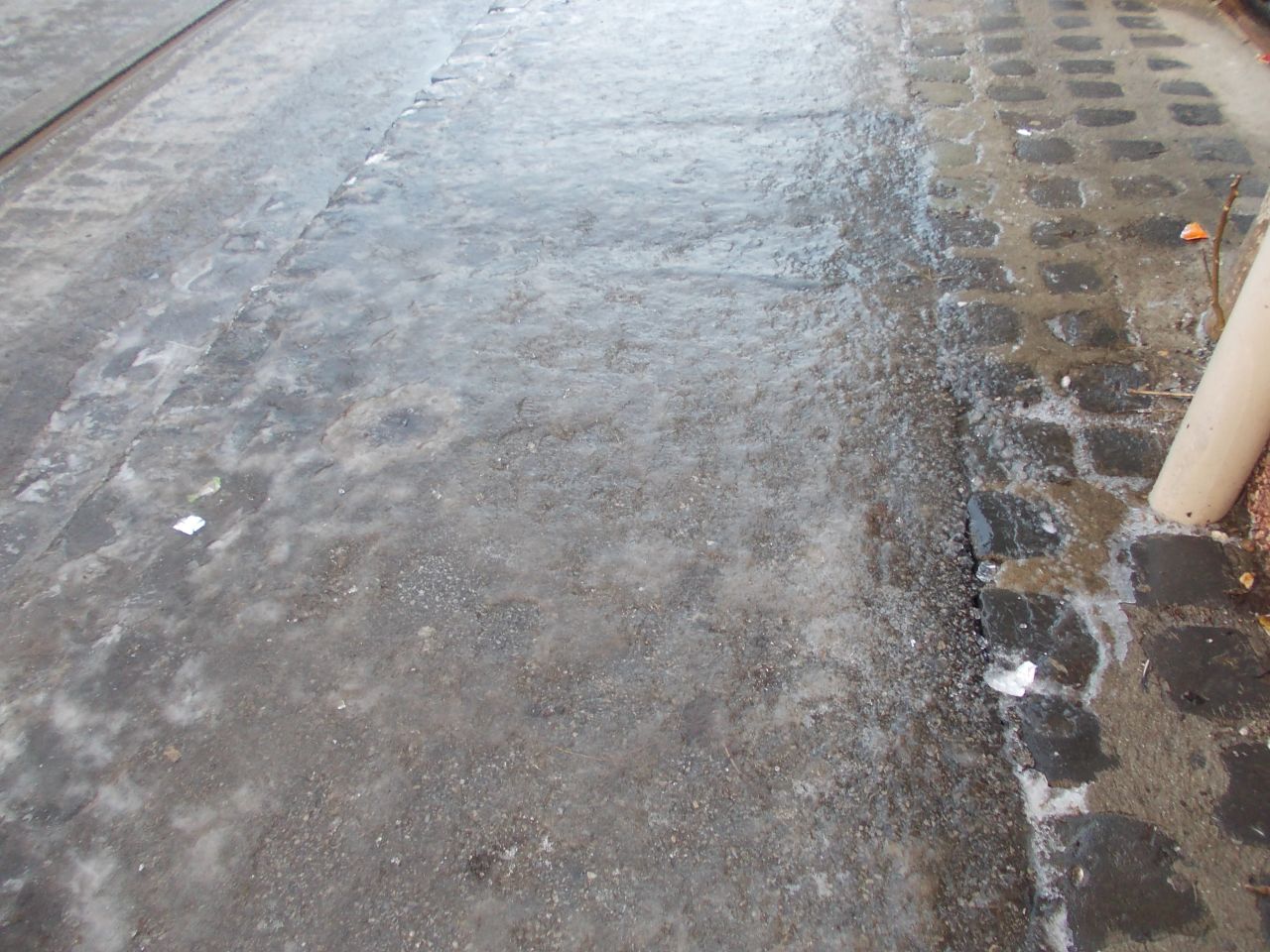 Precipitatiile cazute, urmate de temperaturile scazute de noaptea trecuta au transformat carosabilul intr-un adevarat patinoar. Pe trotuarele, care par acum de sticla, pietonii trebuie sa fie foarte atenti la fiecare pas pe care il fac.