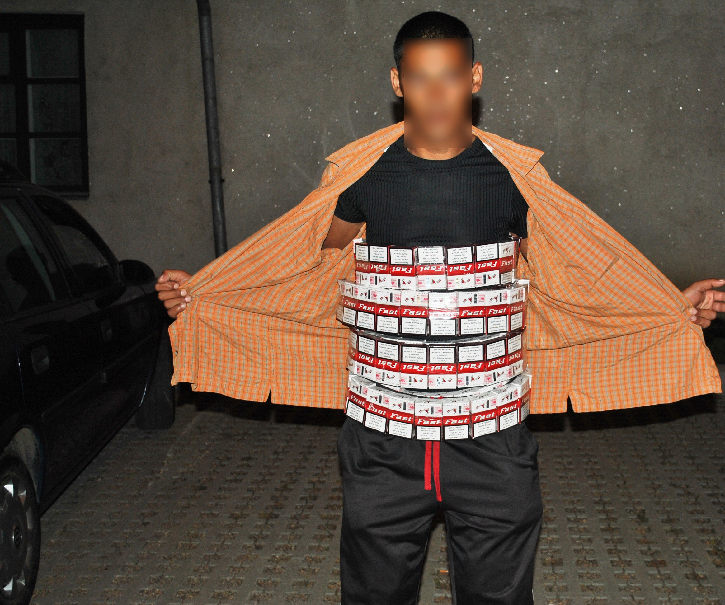 Au incercat sa treaca granita cu peste 1.500 de pachete de tigari netimbrate, lipite de corp. FOTO