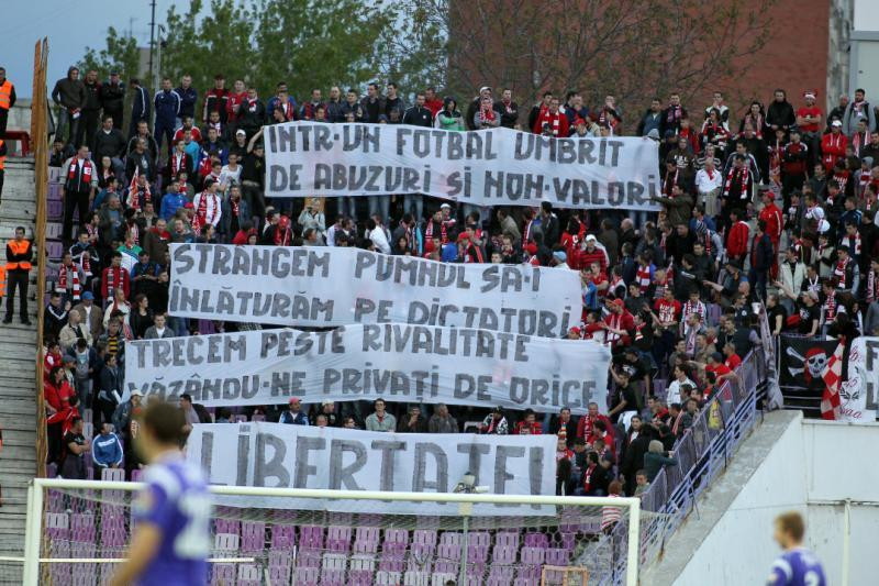 Scorul de pe tabelă le-a lăsat un nod în gât suporterilor timişoreni, însă aceştia au avut puterea să strige în continuare împreună cu rivalii din Arad împotriva lui Sandu şi Dragomir.