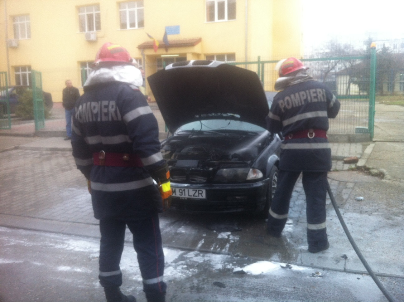 Panica in aceasta dimineata intr-o parcare din zona Dacia. Pompierii au fost solicitati sa stinga flacarile izbucnite la motorul unui autoturism marca BMW.