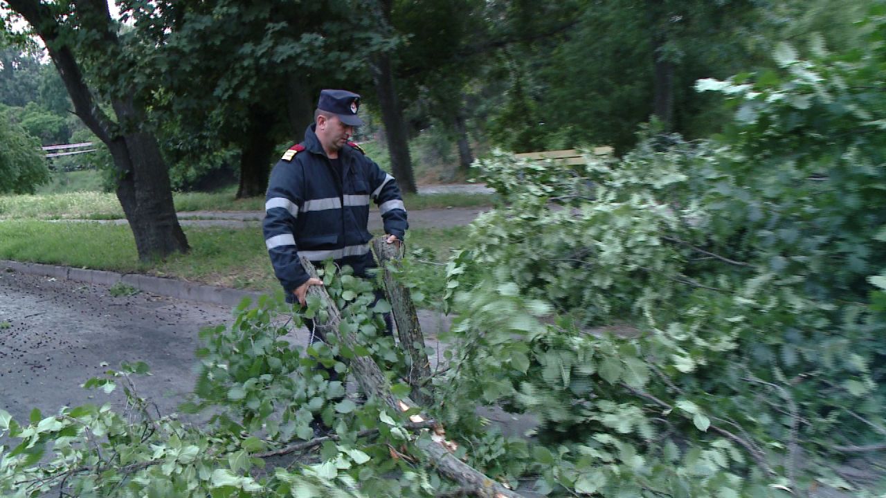 Mai multi copaci au fost pusi la pamant de vantul puternic, iar circulatia pe unele artere a fost blocate timp de zeci de minute. Pompierii s-au chinuit minute in sir sa ii deblocheze de pe carosabil.