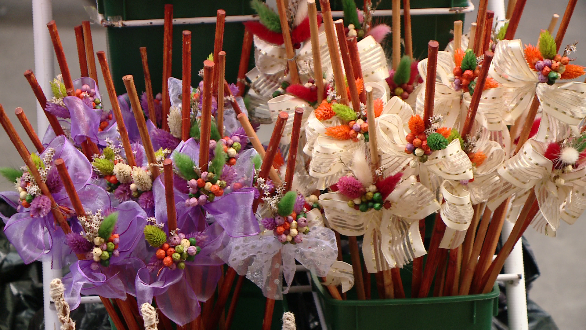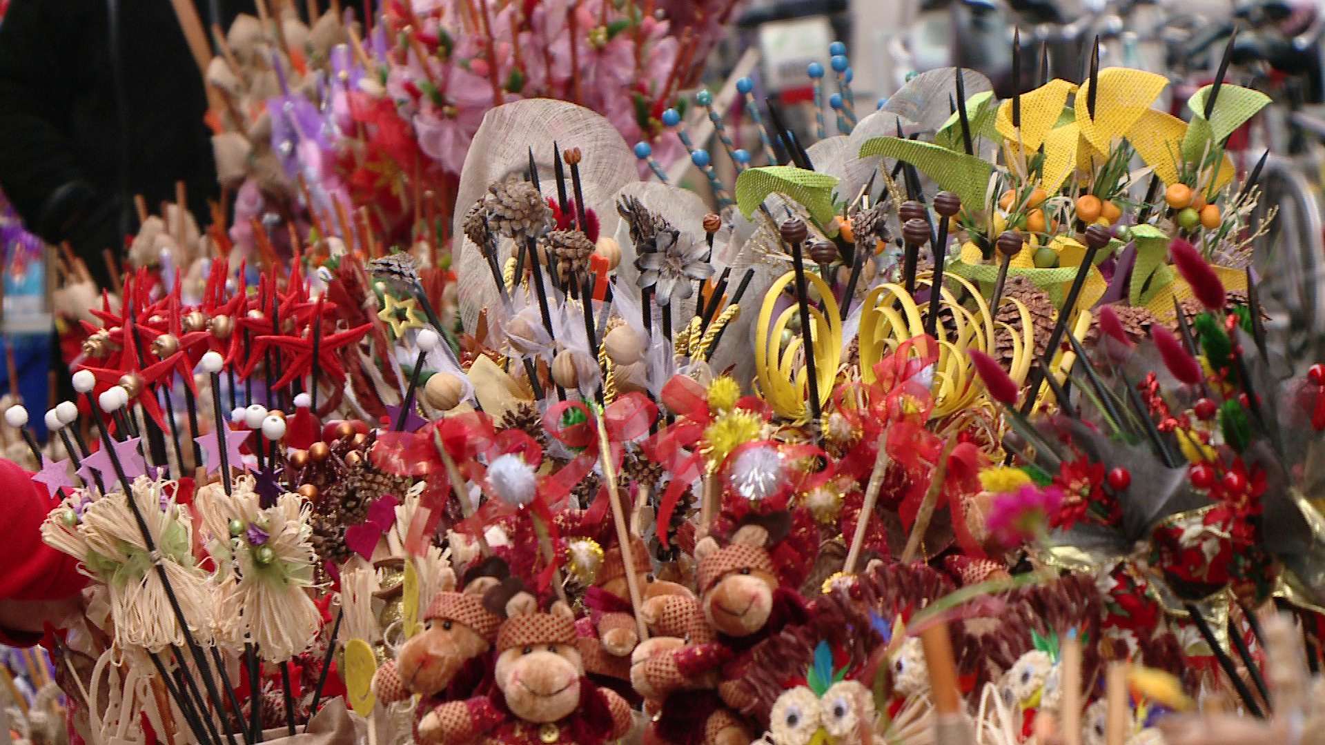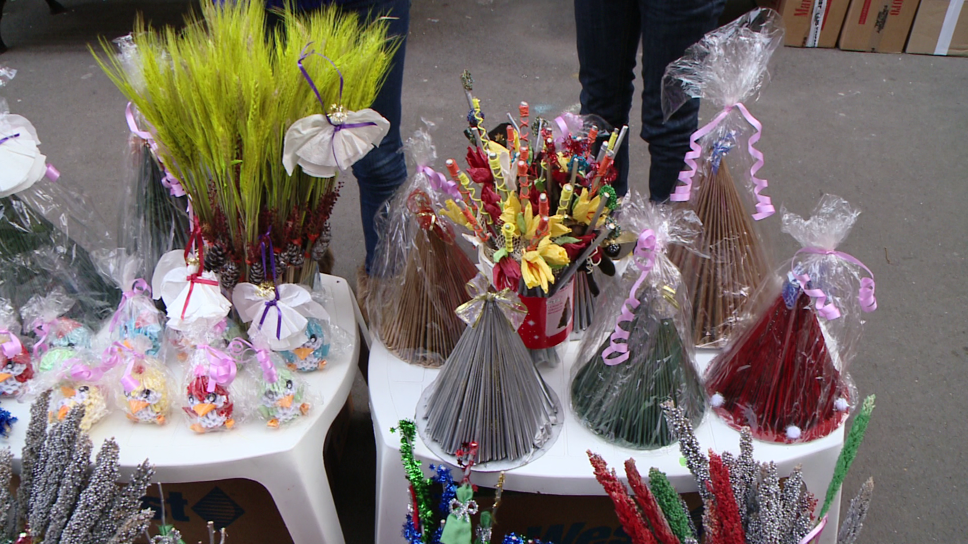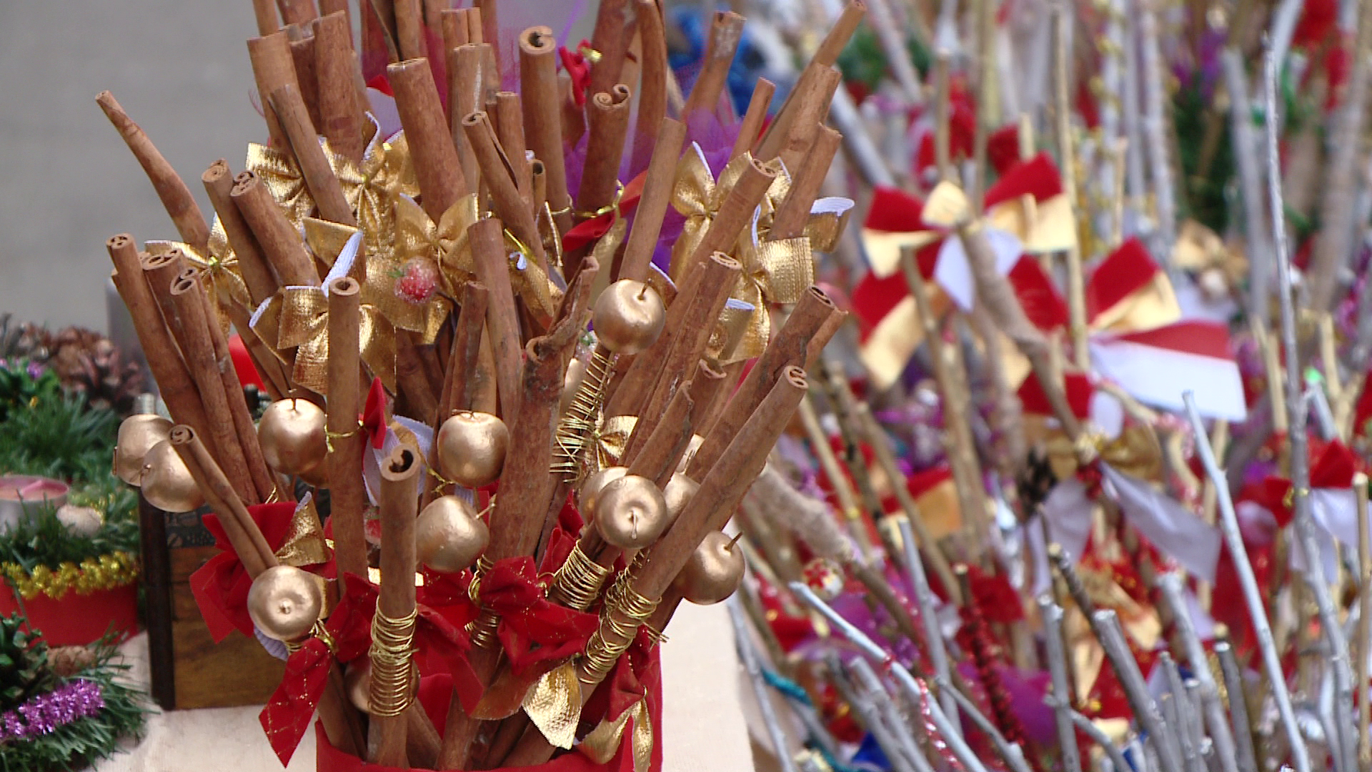 Spiridusii lui Mos Nicolae au fost mai creativi in acest an, asa ca nuielusele sunt facute din spice de grau fosforescente, bete de scortisoara sau altele ornate cu... stuf. Unele sunt kitschuri, altele insa sunt adevarate opere de arta. Dovada si pretul, care e pe masura: de la 2 lei pana la 40 de lei.