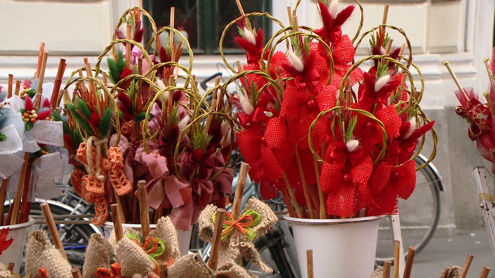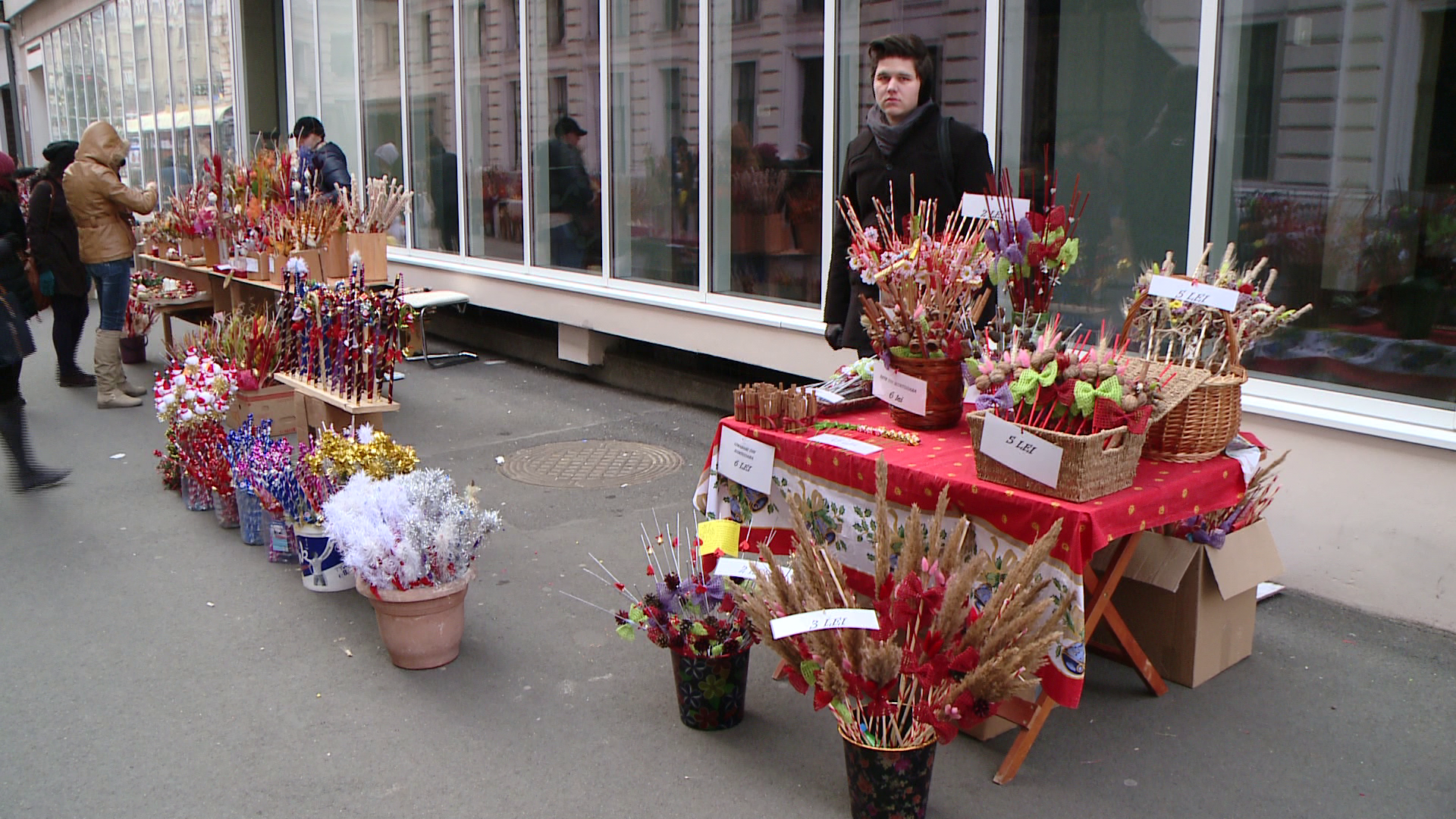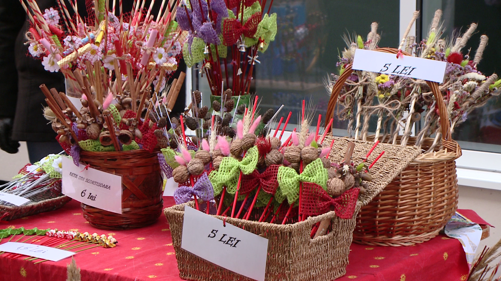 Sabina si Madalina sunt doua tinere din Timisoara care au pregatit din timp altfel de nuieluse, facute din spice de grau sau braduti confectionati din pagini de revista.