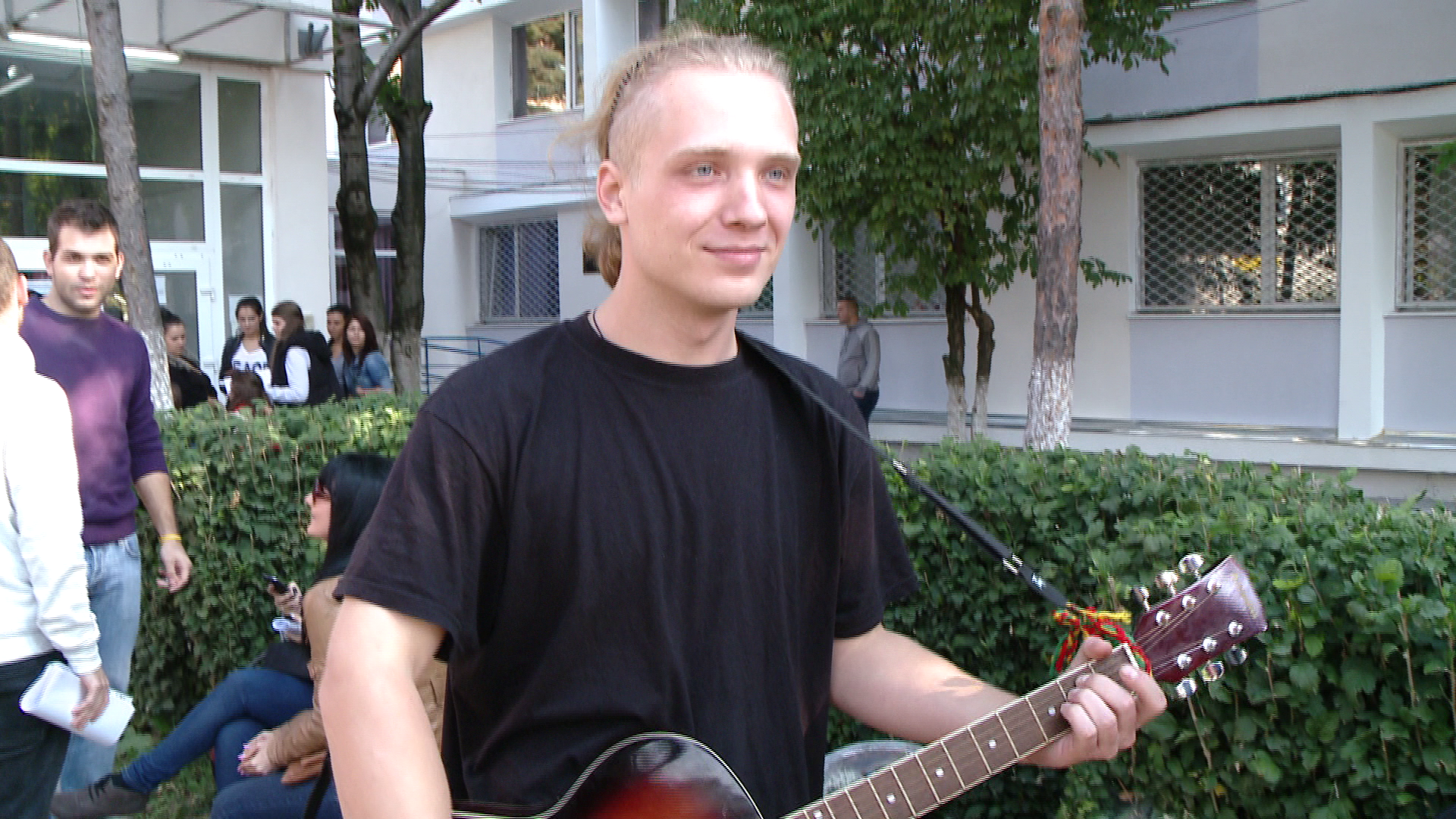 Misa, student la Facultatea de Economie si Administrare a Afacerilor, a venit din Chisinau, cu chitara in spate, dupa 20 de ore de mers cu trenul.