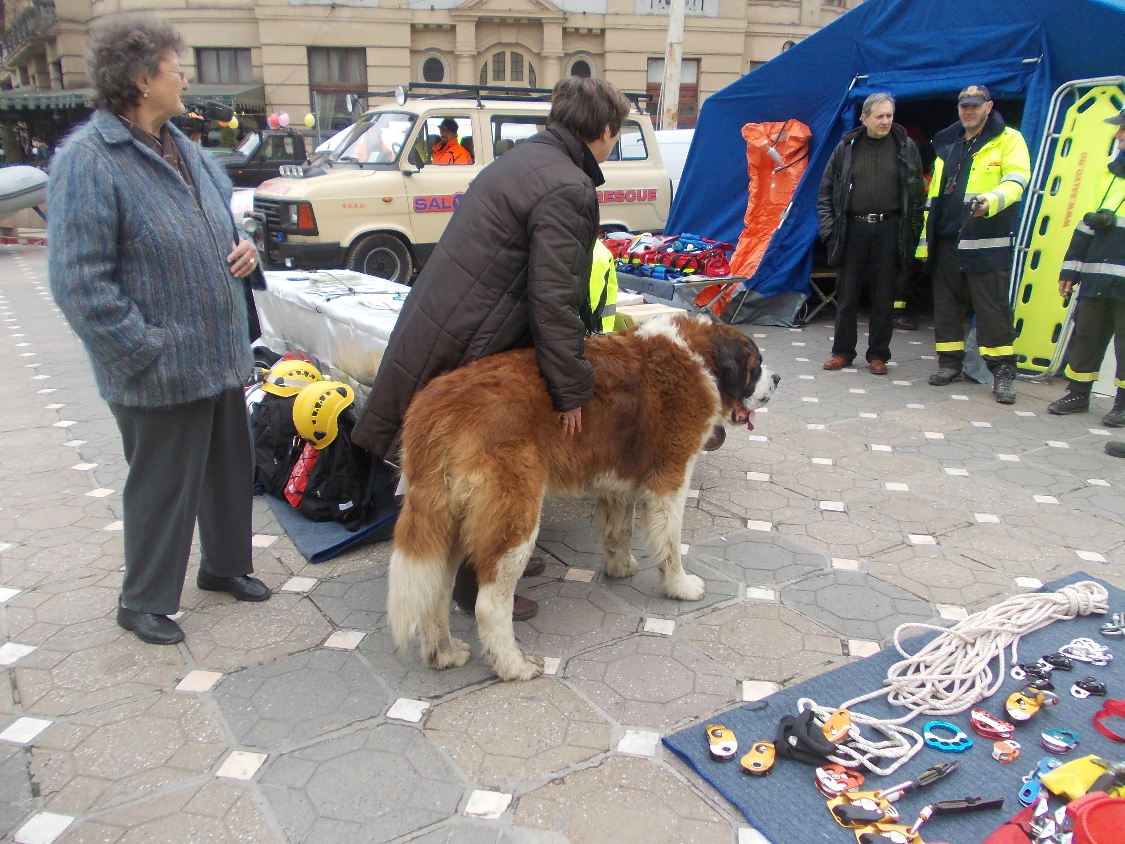 Voluntarii de la Salvo le-au aratat astazi timisorenilor, in Piata Victoriei, ca sunt mereu gata de interventie. Ei au adus in centrul orasului toate echipamentele disponibile si au oferit publicului demonstratii cu cei cinci caini special antrenati.